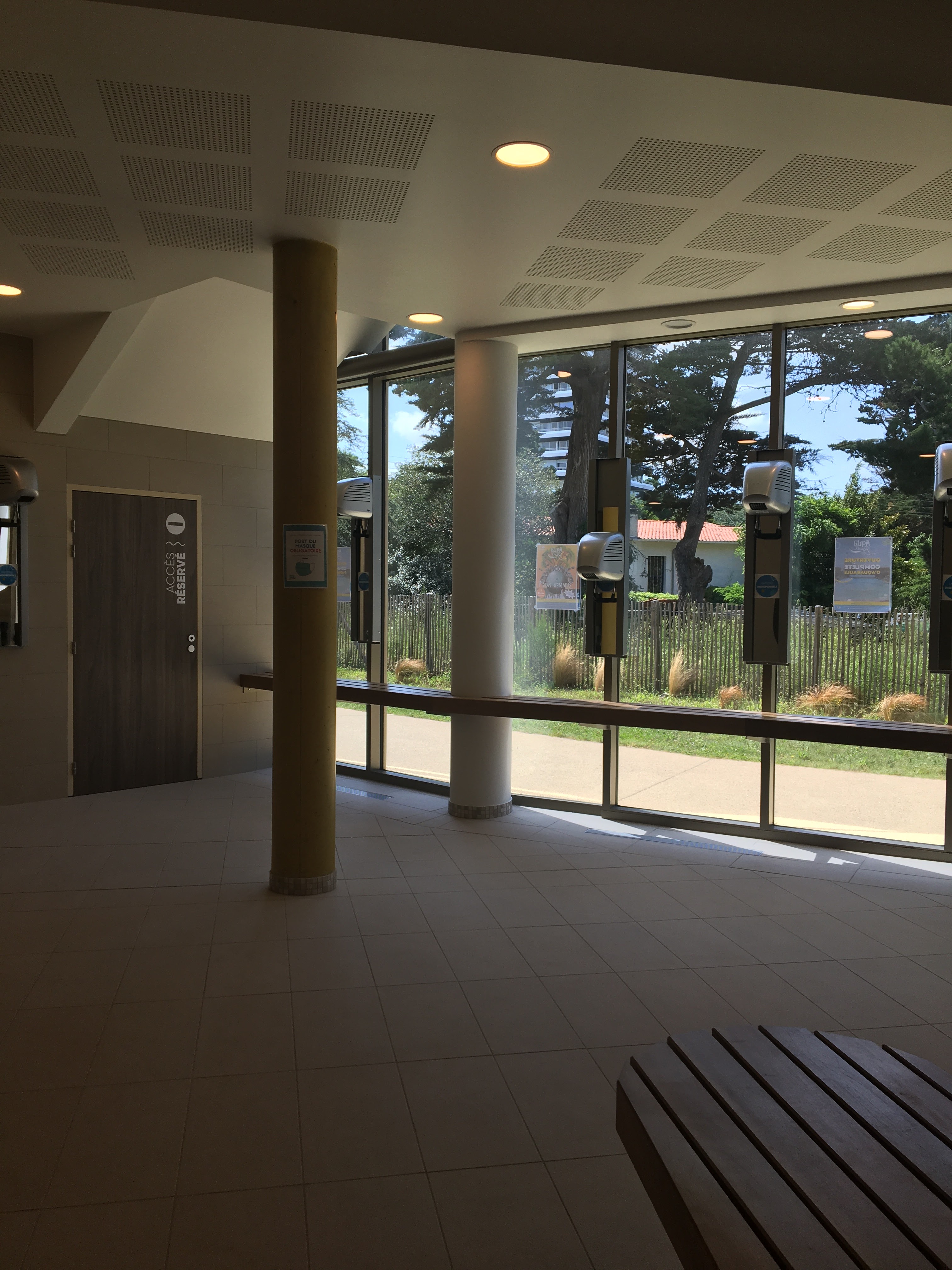 Un établissement flambant neuf! Beaucoup plus tourné vers des prestations Thalasso que vers une pratique sportive et ludique pour les enfants. Un bassin extérieur de 33 mètres!!!... certainement pour être sûr qu'aucun club de natation ne puisse revoir le jour à la Baule. Un bassin intérieur avec des lignes d'eau si peu larges que les croisements entre nageurs sont plus que difficiles..., des murets immergés (dans les bassins), sont potentiellement dangereux car difficilement repérables. Je ne parle pas des prix d'entrées qui doivent rebuter un très grand nombre de famille. A cet emplacement en 1971 jusqu'en 1999: un bassin extérieur olympique de 50 mètres avec 6 couloirs, une fosse à plongeon avec 3 plongeoirs 1 m. 3 m. et 5 mètres, un bassin intérieur de 25 mètres avec 4 vrais couloirs. Par la suite un grand toboggan est venu compléter ce centre aquatique. D'accord pour que les choses évoluent mais de là à passer à ce type d'établissement le choix est clairement tourné vers une clientèle ciblée.