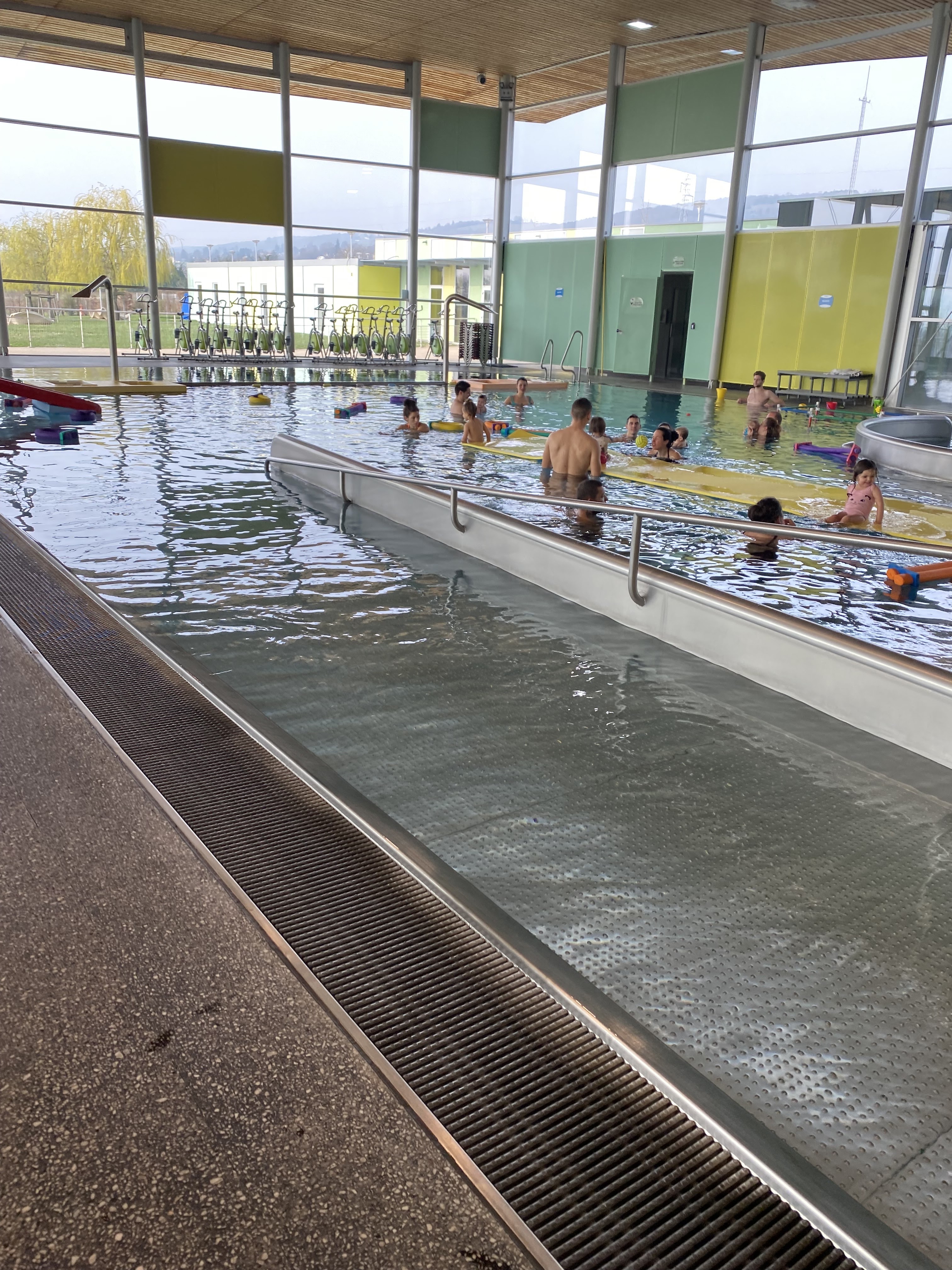 Piscine tres propre, lumineuse et pratique. Bassin a bonne température pour jouer dans les bulles avec les enfants. En revanche l accueil est peu chaleureux....