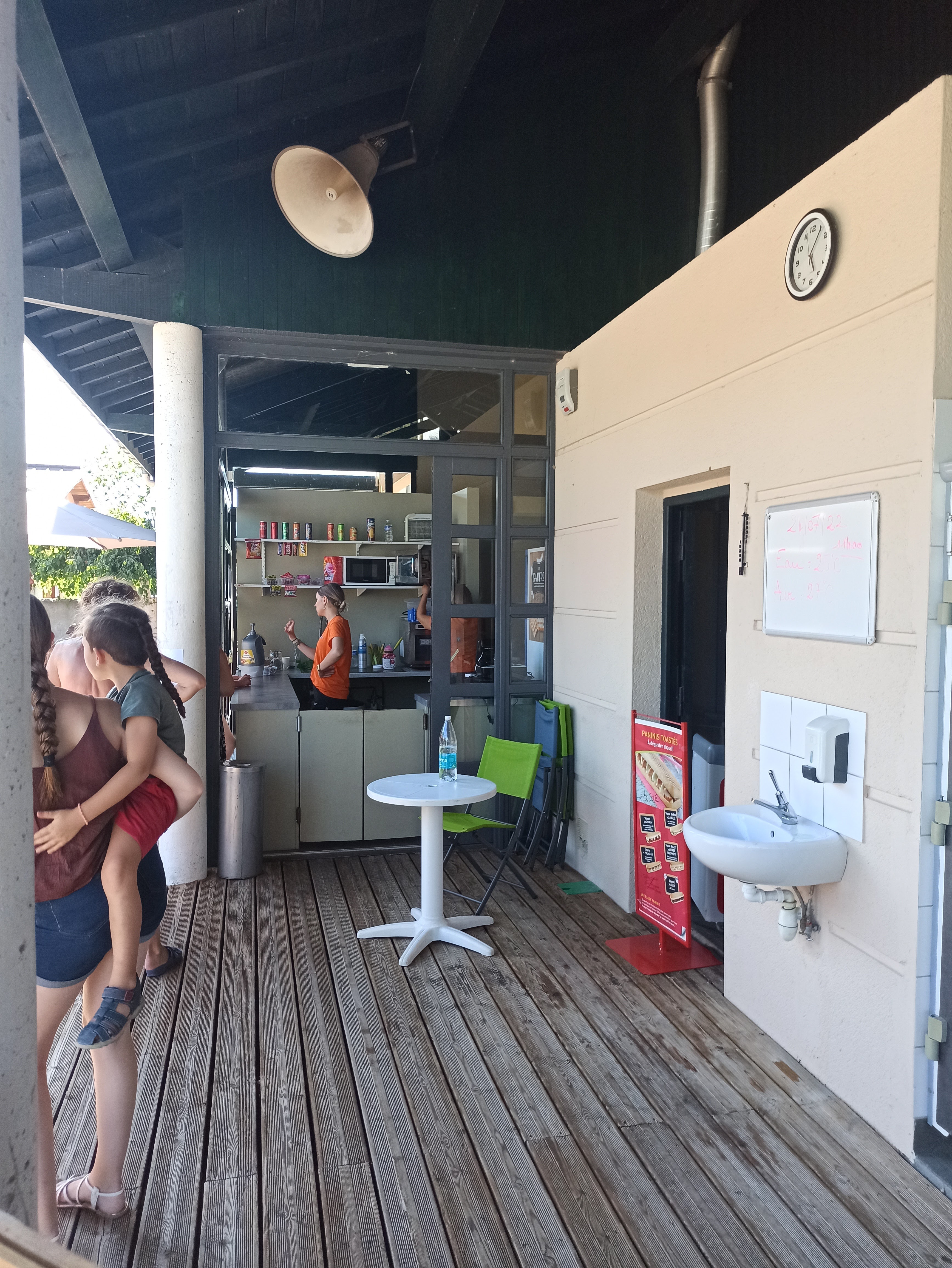 Cadre magnifique mais attention aux bémols : guêpes sous la plateforme en bois niveau pataugeoire, manque zones ombragees malgré location de parasols. Panne de feux dans le toboggan donnant permission au suivant de glisser, ce qui n'aide pas les enfants les plus jeunes à se répéter...