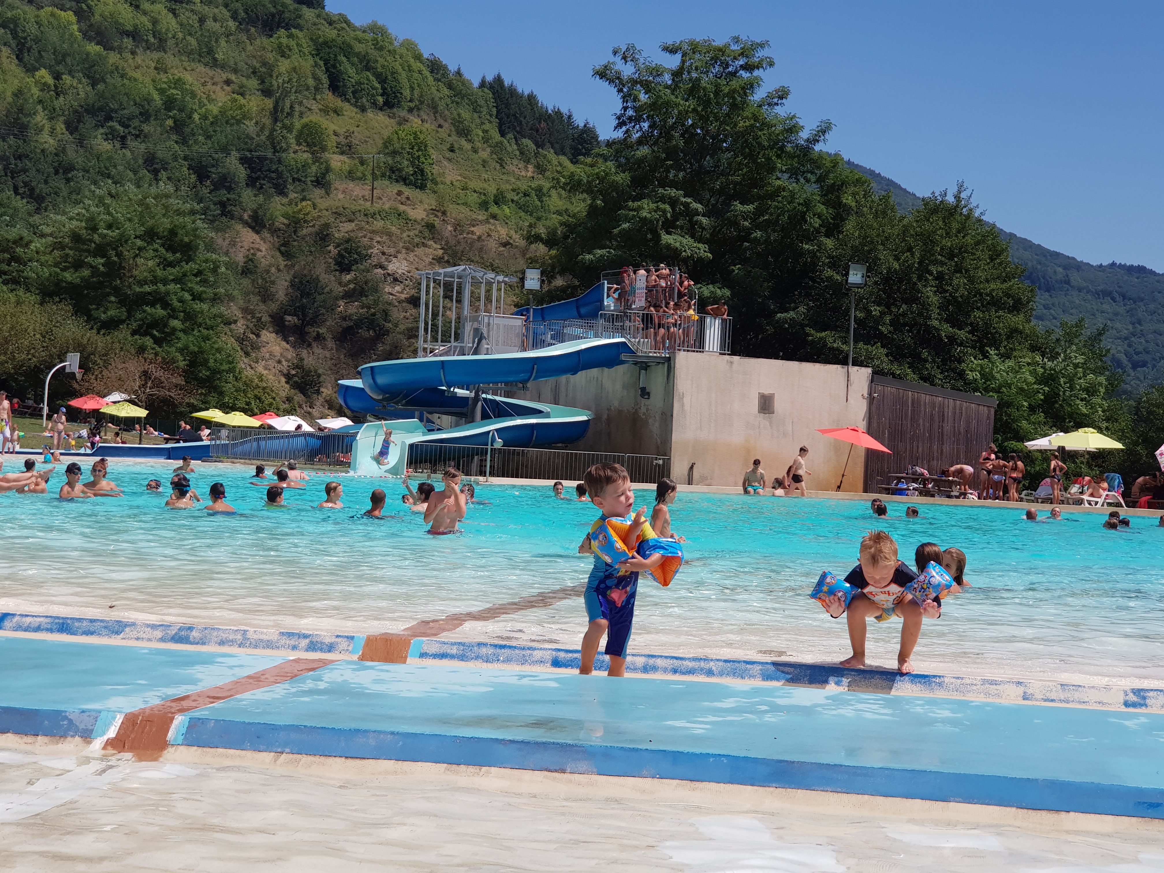 Super Parc, Piscine géante avec 2 toboggan 🛝 ! Pleins de parasols, terrain de volley, table de ping pong… et plein d’autres choses ! Petite restauration en plus !