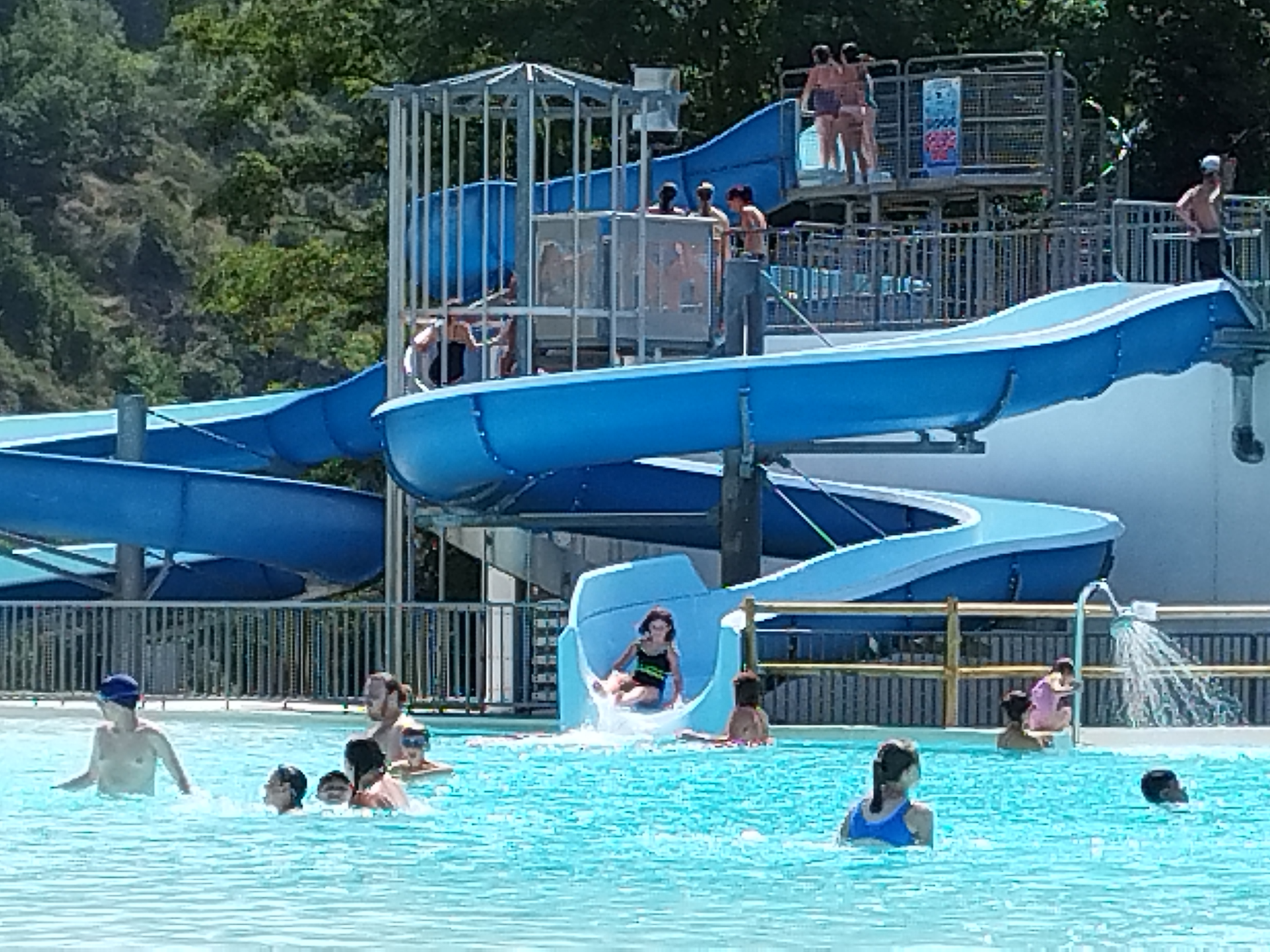 Piscine sympa pour les loisirs. Toboggans aquatiques, aires de jeux. Herbe où pique niquer, transats et parasols en location. Par contre, natation sportive difficile (bassin en demi disque).