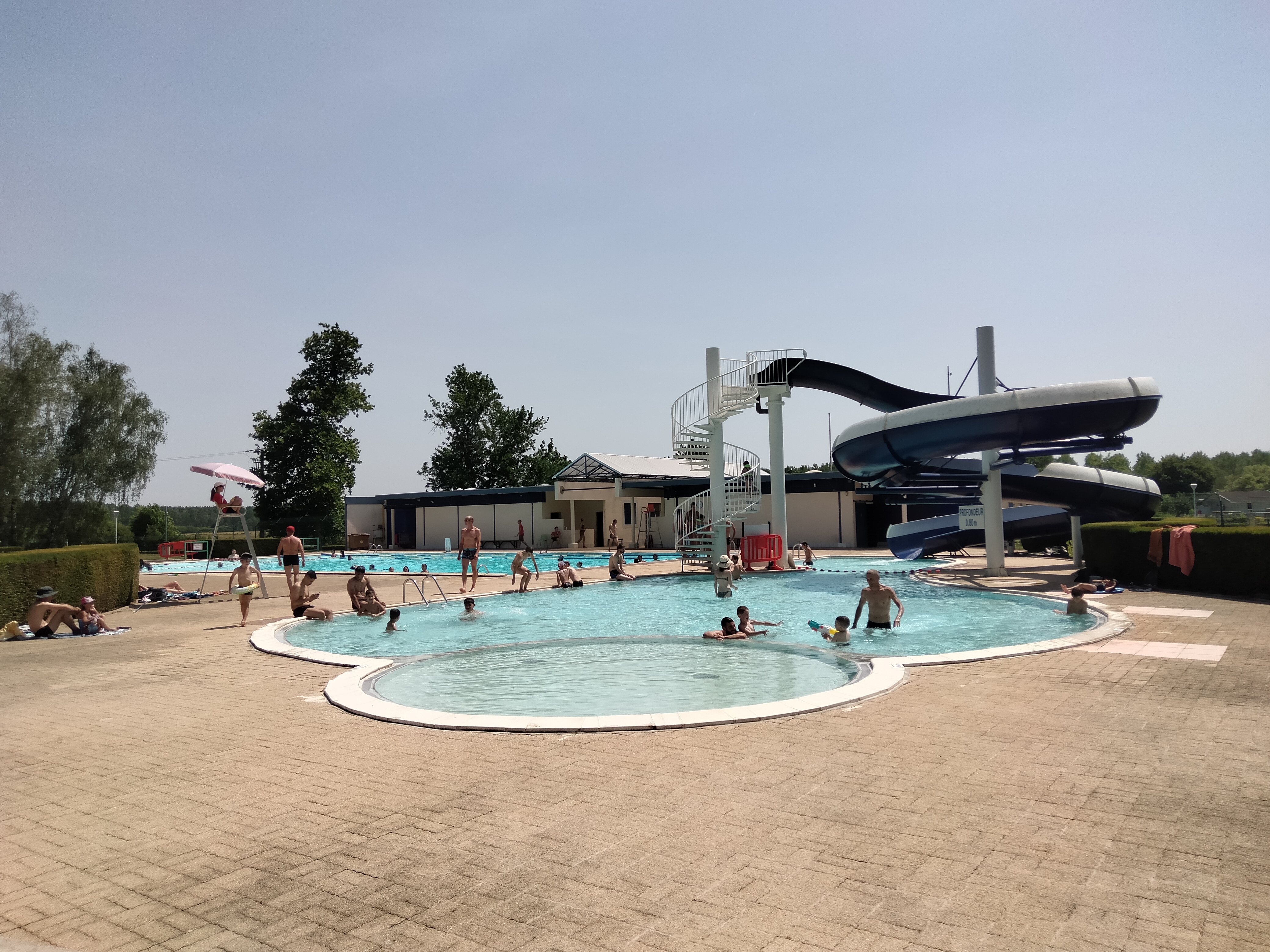 Situé en bordure de la Saône, cette belle piscine de plein air, est bien entretenue avec une pelouse raze et, un très grand parc. Elle possède de grands arbres, idéal pour ombrager le site 🌳, quelques bancs en pierre et de nombreuses poubelles.!! bien qu'il y ait du monde, j'ai trouvé l'endroit d'un calme 😌 olympien, d'une grande tranquillité ........ qu'elle détente !! Un snack complet prône au milieu du complexe et, propose ses spécialités : paninis, gaufres 🧇, frites 🍟, boissons 🧃,glaces, et bien d'autres choses....🍡!!!! le premier bassin en huit est doté d'un grand toboggan 💦 et d'une pataugeoire circulaire 🕳️ pour les tout petits 👶 ! Le deuxième plus conventionnel rectangulaire, d'une zone délimitée🧜 profonde de 80cm, le reste jusqu'à 2ml !!!! Il y a aussi 2 lignes d'eau nageurs de 25ml ....🏊..!!!!! Voilà : il y en a pour tout le monde ! les personnes en situation de handicap ont accès à tout ♿!! Le parking 🅿️ véhicule est bien aménagé......... chouette,🦉....... je recommande 🌀