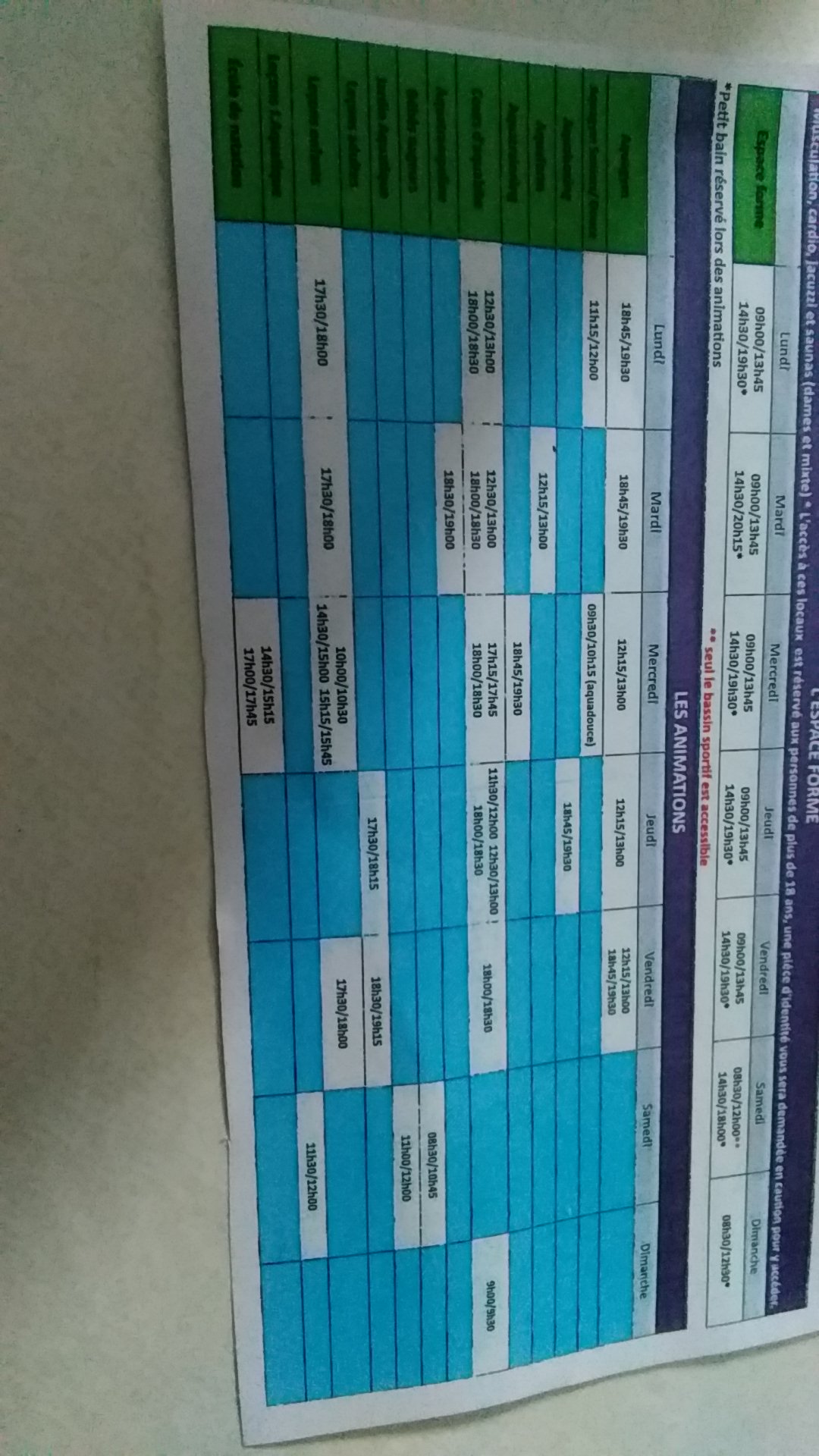 Le lieu est grand, propre, facile d'accès. Seul petit bémol, les horaires des activités aquatique un peu trop tôt pour en faire bénéficier les actifs.