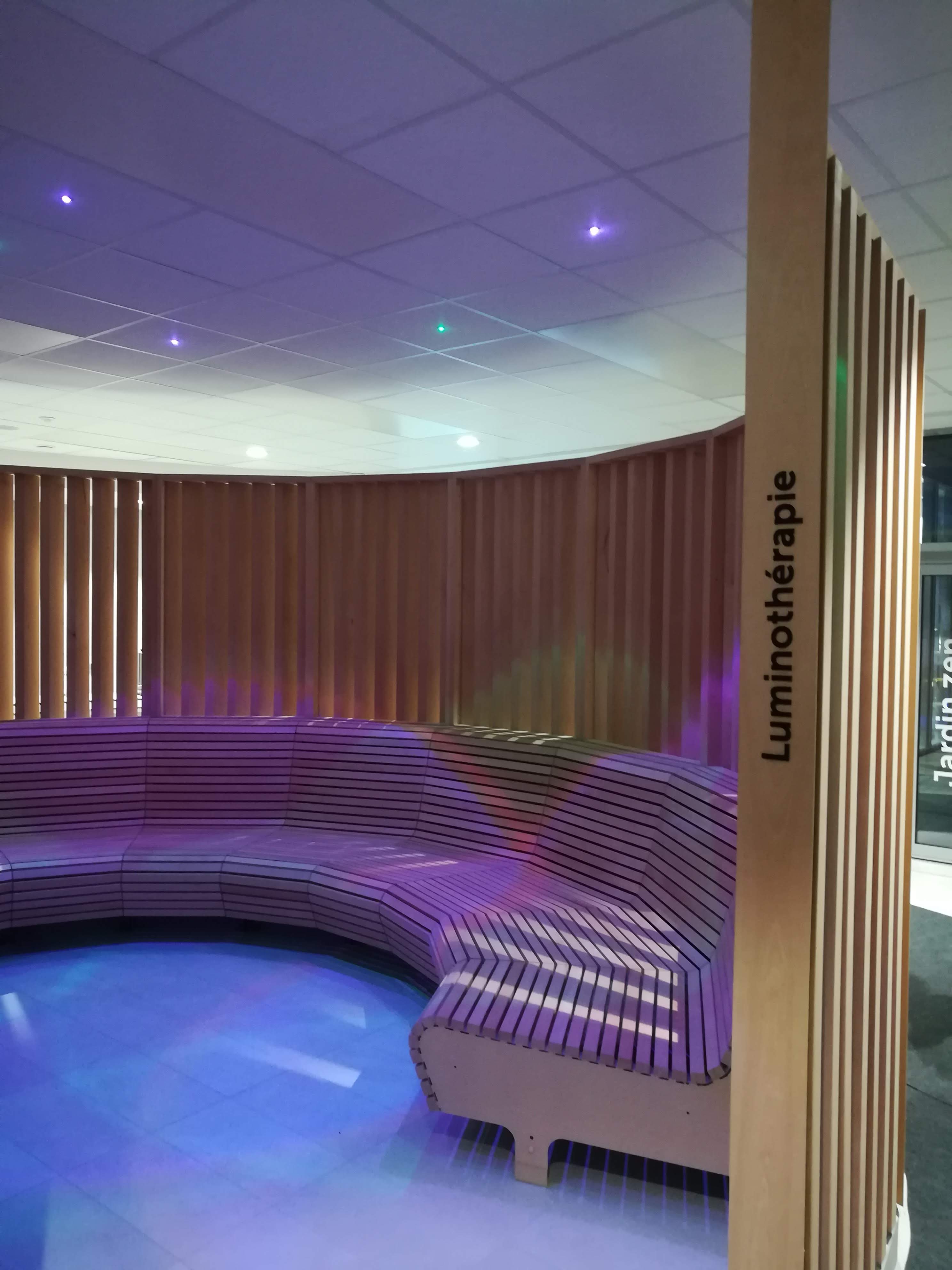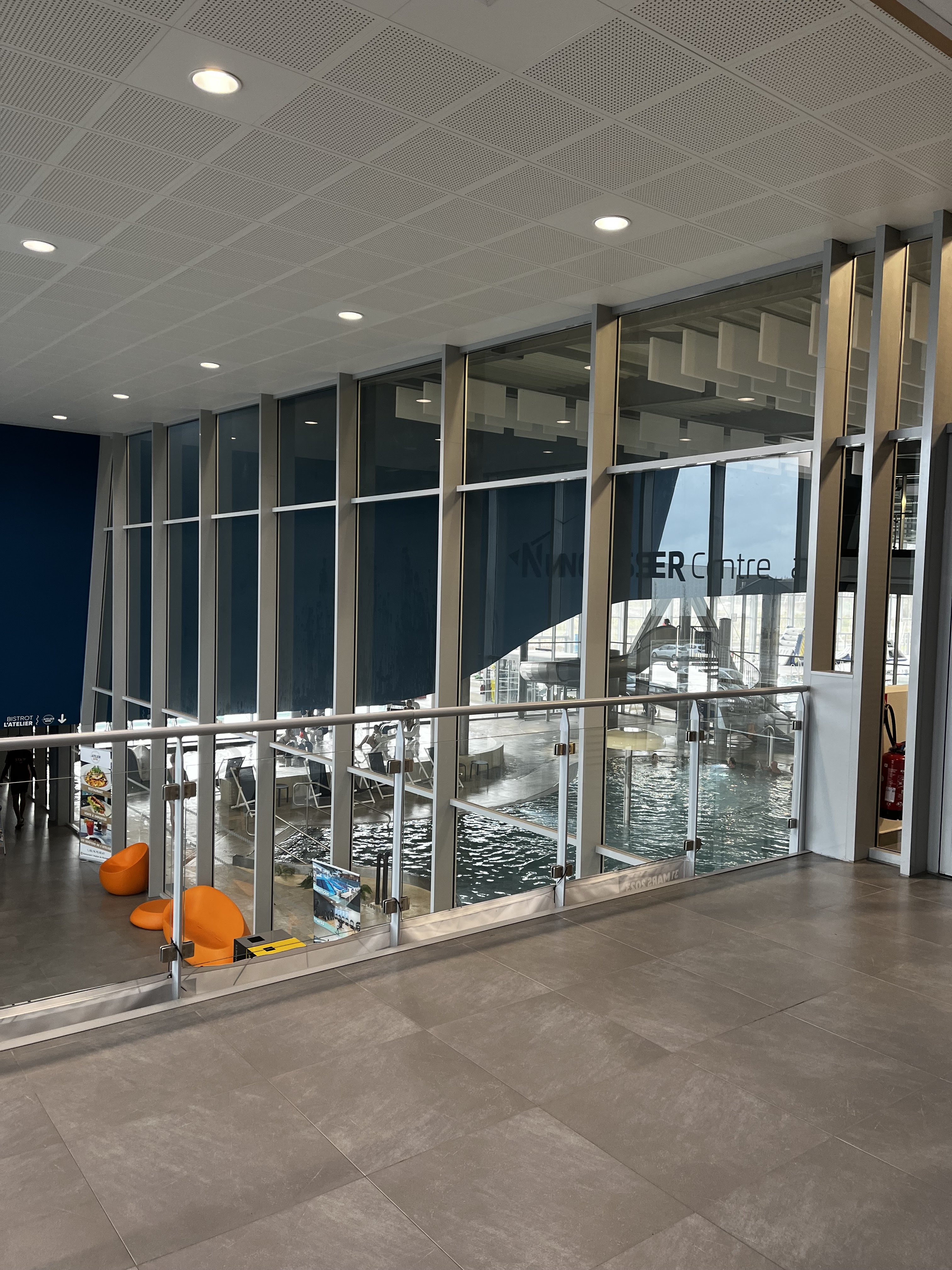 Très beau centre aquatique , le centre bien être très bien mais déçu par le coin luminotherapie c’est juste un coin avec des bancs et quelques spots et en plus il se situe derrière la tisanerie et les gens ne respectent pas le silence quand j y suis aller avec ma fille 2 employés parlait a haute voix aucun respect pour les gens qui ont payés quand même 20e par personne et qui souhaitent profiter d un bon moment !! Dommage aussi qu’ils ne préviennent pas à l entrée quand on prend les places qu’il y a un cours sans l espace détente le dimanche matin qui dure 45mn du coup ils coupent les bulles de la piscine !!