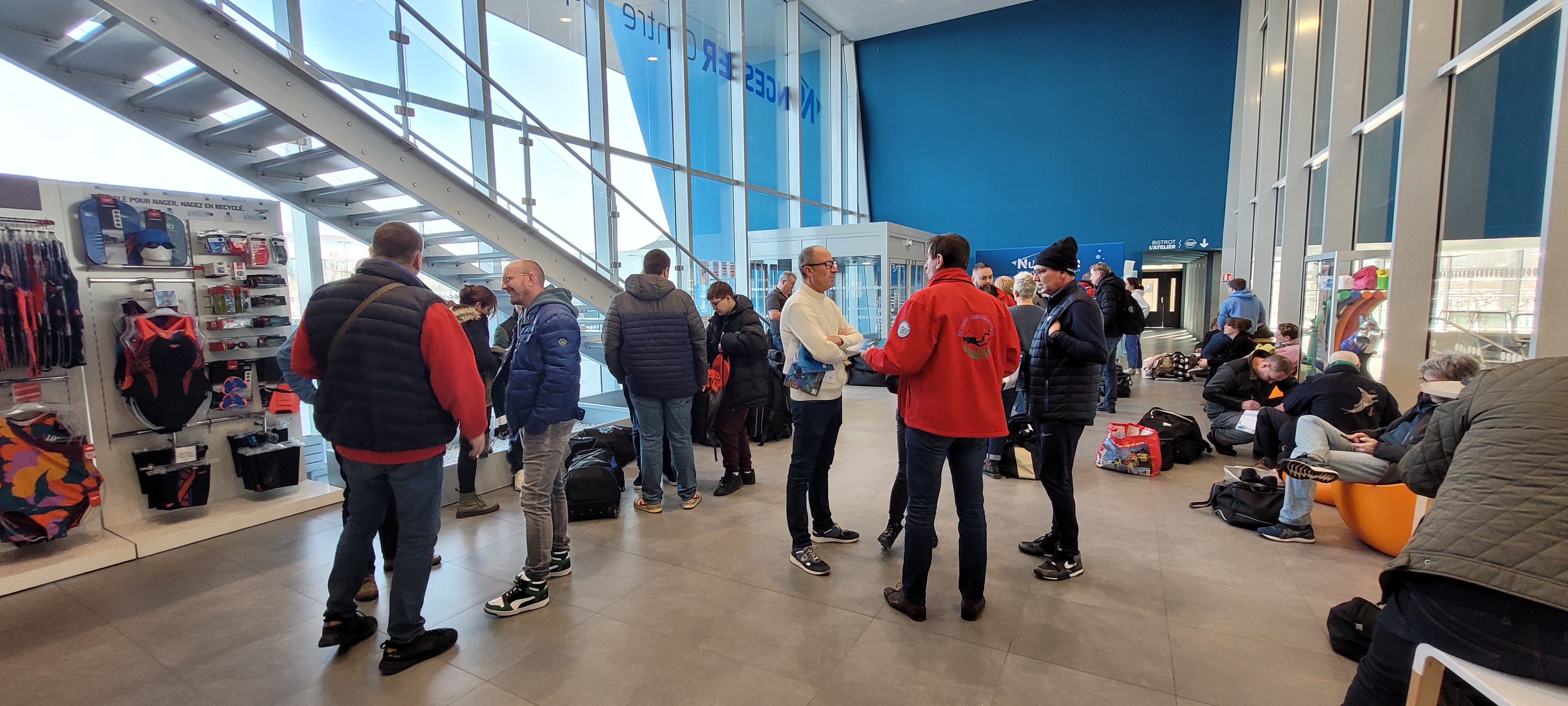 À éviter pour l'ouverture À l'entrée, il y a foule, vous vous dites, normal ça vient d'ouvrir. Arrivé devant l'hôtesse, celle-ci vous accueille avec un chewing-gum en bouche. Alors les carnets de10 C'est à l'étage . Nous faisons remarquer qu'il n'y a aucune indication sur les critères des files d'attente et qu'on découvre qu'il faille aller à l'étage... De même, vous achetez votre carnet, vous demandez pour les places gratuites.... Et bien non, ce n'est pas pour les carnets. Une information à l'accueil aurait été une nouvelle fois pleine de bon sens. L'espace pour enlever les chaussures est pratique pour 5 personnes, pas plus. Après vous vous marchez dessus. Au vue de la taille du complexe, c'est très étonnant de laisser 10m2 seulement. Les espaces communs pour se changer et déposer les affaires sont étroits également, avec salariés qui passent continuellement avec leur tuyaux et voiture de nettoyage. Il y a déjà beaucoup de monde, et cela rajoute encore à la promiscuité. Une fois dans l'espace piscine, il y a du monde, certes, c'est l'ouverture, mais le manque de civisme est malheureusement trop flagrant. Les seuls 5 couloirs pour nager sont surpeuplés et mélanges nageurs confirmés, du dimanche (comme moi) et cette catégorie de touristes passant son temps dans l'eau accroché aux bords tout en discutant. De ce fait l'incivilité est de mise. Certains maîtres nageurs sur leurs chaises, après 2jours d'ouverture sont déjà bien affalés dans leurs sièges, la grande majorité restant tout de même très attentive. En résumé, j'attendrai que la population redevienne une population habituelle pour une piscine, ou civisme et éducation sont plus que de simples mots. Le personnel aura plus d'expérience et de nouvelles idées auront vu le jour comme - le port d'un bonnet de bain - plus de lignes pour nager - des lignes spécifiques nage rapides, ou par type de nage. - pas de chewing-gum dans la bouche, on est pas des ruminants. - Des horaires plus larges, là où des piscines proposent jusqu'à 21h. J'y retournerai probablement dans quelques mois , en attendant, je resterai à sourceane, qui est sans comparaison pour le moment. Cependant cela reste une très belle piscine, avec beaucoup de potentiel.