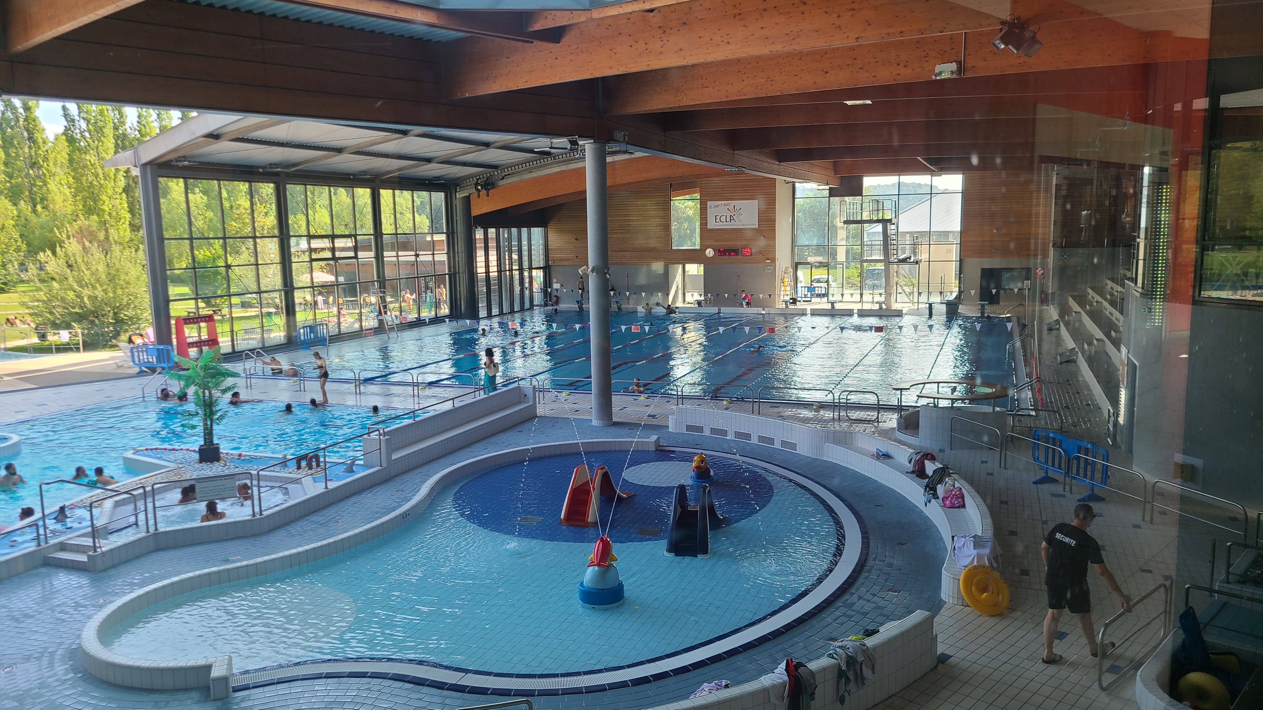 Très belle piscine avec ses différents espaces, ses tobogans et plongoirs, mais quel dommage qu'il n'y ait plus aucun bassin à l'extérieur.