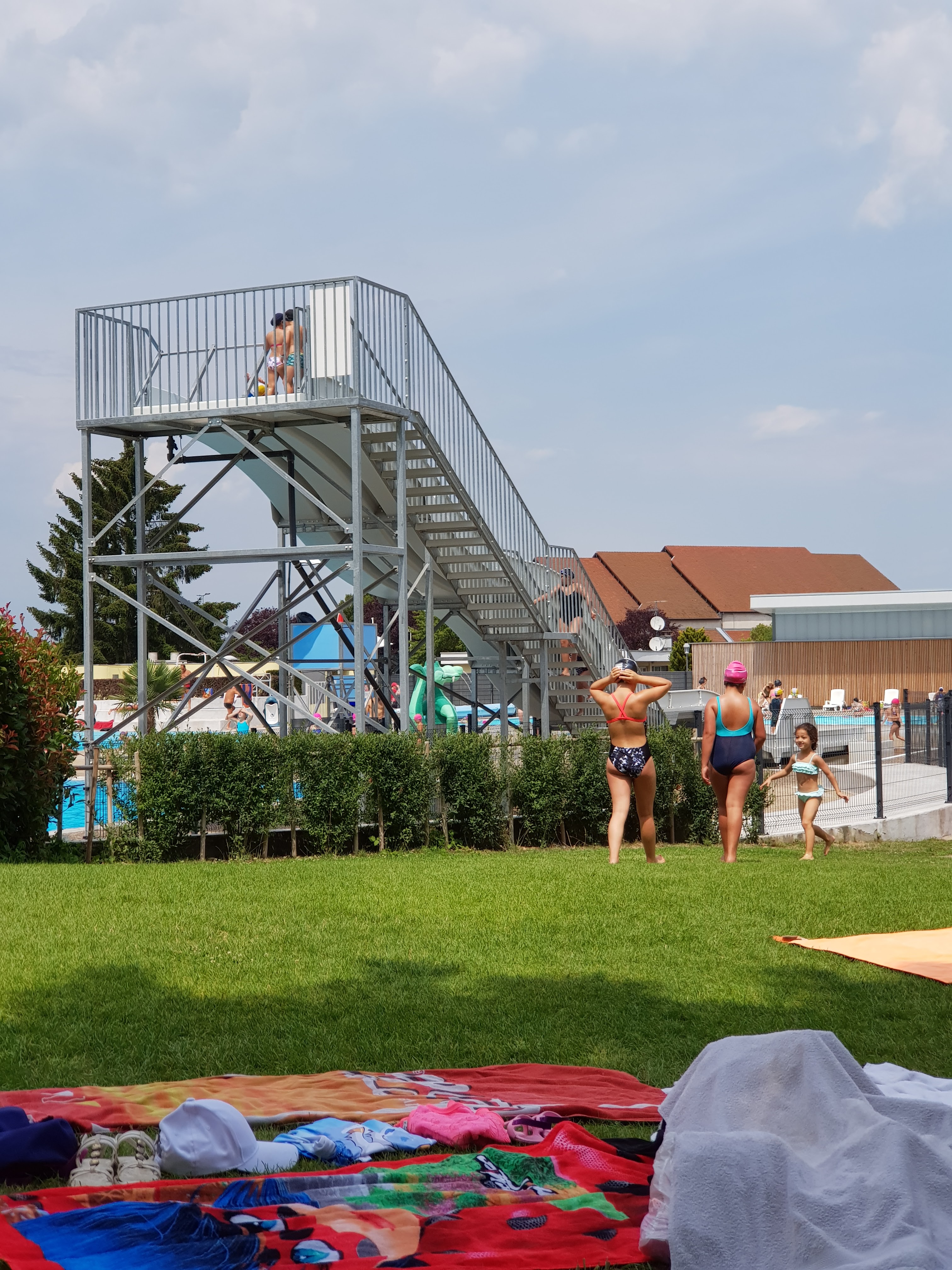 J'ai été agréablement surprise!! Une collègue m'avais parlé et montré des photos de la piscine l'année dernière j'avais tellement envie d'essayer... Je me suis jeter à l eau 😂 Le bassin enfant est juste topissime c'est comme une place de jeu avec tobbogan etc... Mais avec de l'eau mes enfants (5 et 8) ont été RAVI!! Tout est clôturé donc pas de possibilité qu'un enfant s'échappe et juste à côté il y a pour les plus petits vraiment bien organisé. Mon fils étant plus grand à adoré les 3 grand tobbogan situé de l'autre côté prêt des grand bassins. Il y a aussi une familiale ou le bonnet de bain est OBLIGATOIRE alors ne l'oublier pas 😉. Tout sa été franchement top, ma fille à donc décidé qu'on irai plus jamais à une autre piscine 😉