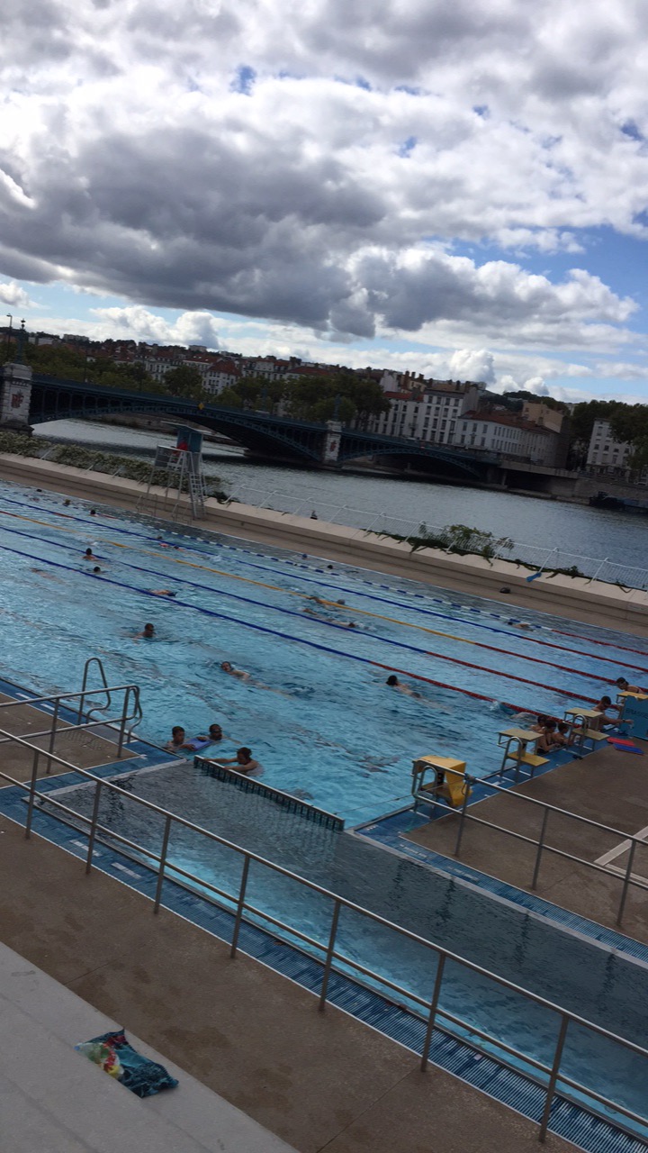Incontournable piscine de Lyon, le long des quais. La vue est superbe. L'accès est rapide, possibilité d'attacher son vélo juste devant la porte ou de venir en Vélo'v. La piscine est très pratique, il y a beaucoup de casiers et de cabines. En période Covid, il est possible de réserver en ligne (douche fermées).