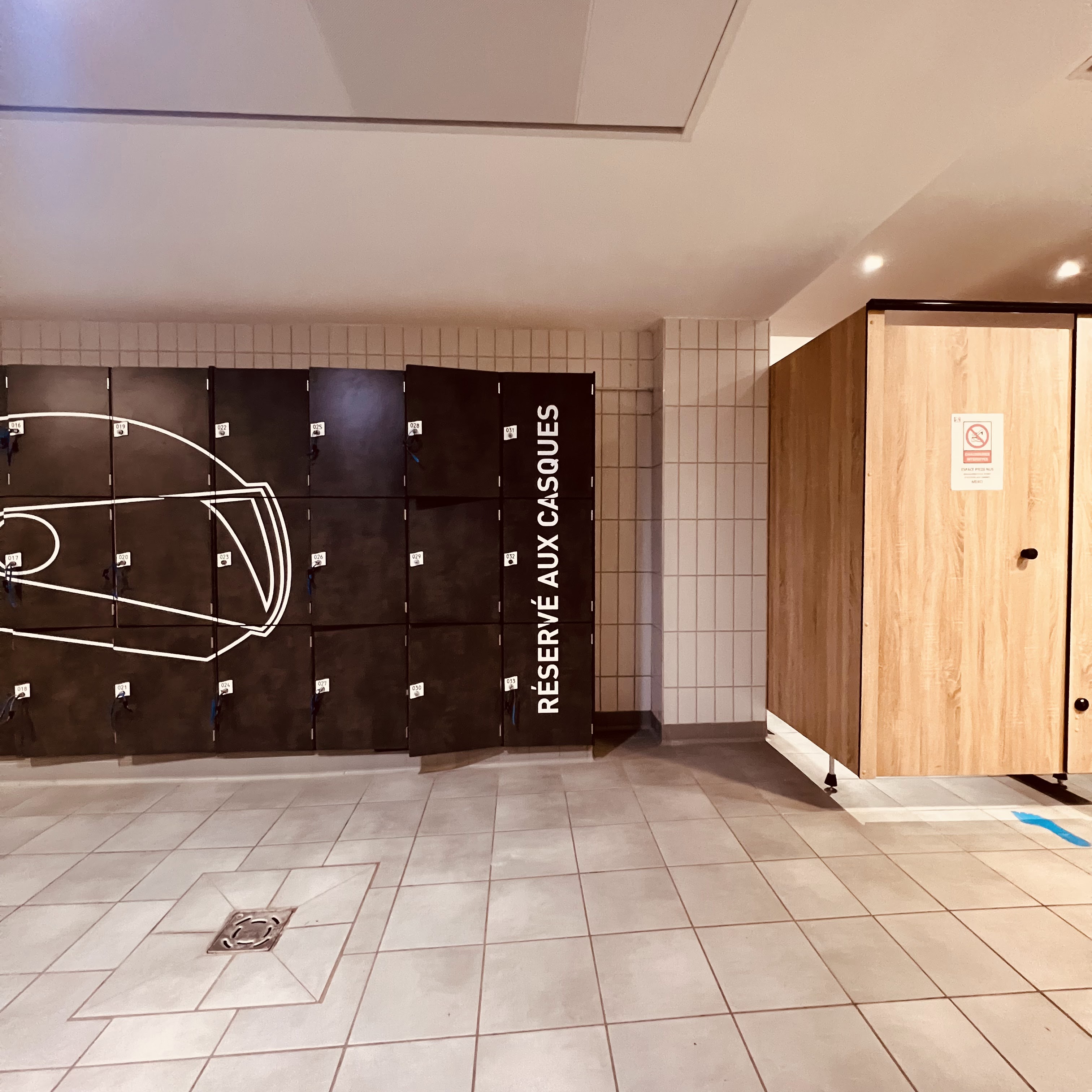 le sols des cabines n est très propre les gens y pénètrent avec leur chaussures alors que la ligne se trouve avant Pour INFO on m à volé mon vélo devant l'entrée alors qu' il y avait un vigil . À améliorer. : le sol des cabines, le respect des zones sans chaussures La sécurité des vélos Cordialement