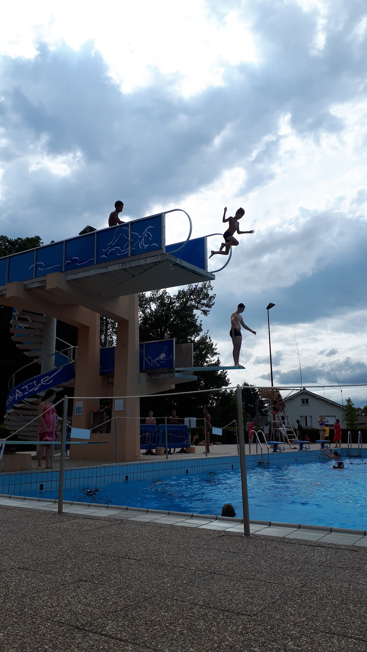 Gros points positifs : Piscine de taille olympique, chauffée, avec plusieurs plongeoirs !👍! Endroit agréable grasse à son coin d'herbe ombragé. On peut y amener son pique nique.