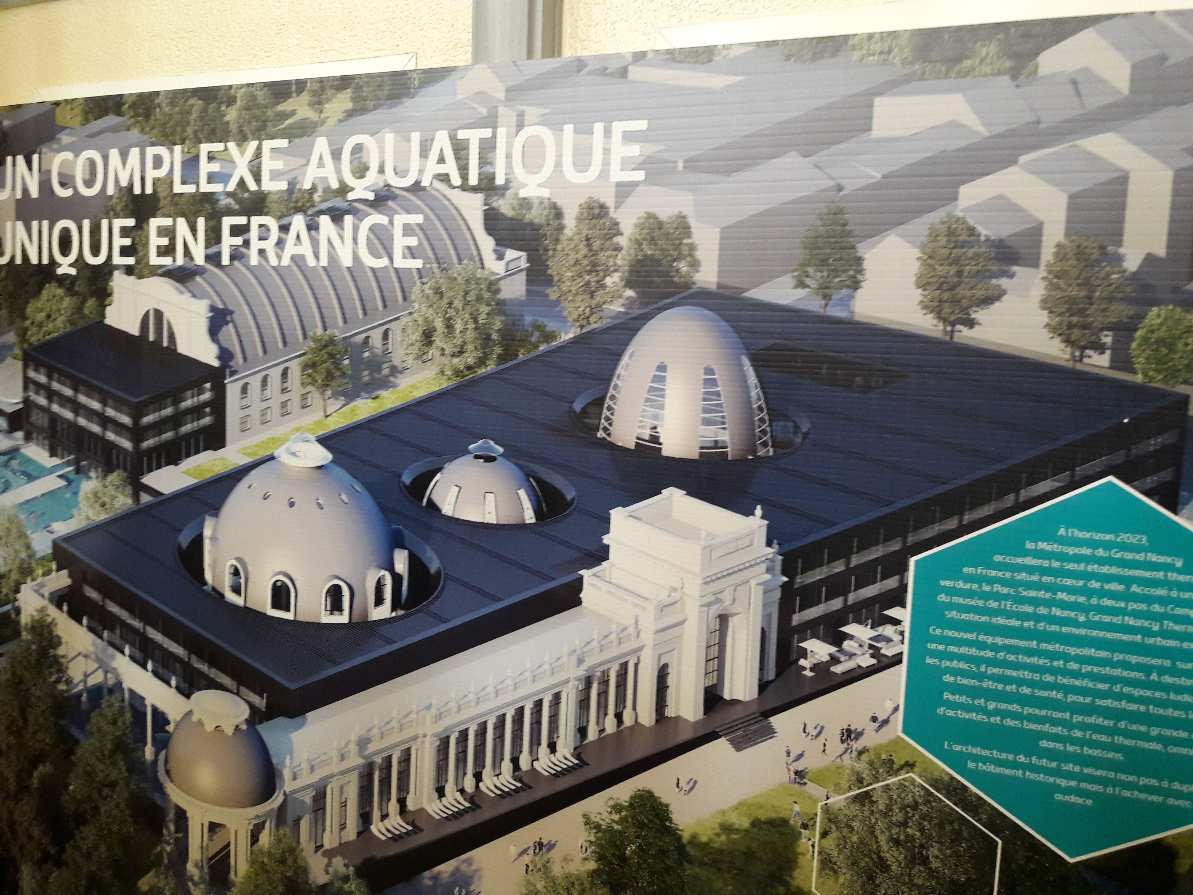 Les travaux débuteront cette automne 2019 pour une ouverture du site 2023. Le site deviendra GrandNancy THERMAL avec un complexe aqu-ludique. Un projet grandiose, beau ect... il y a plus qu'a attendre 2023 pour profiter de cette superb espace.