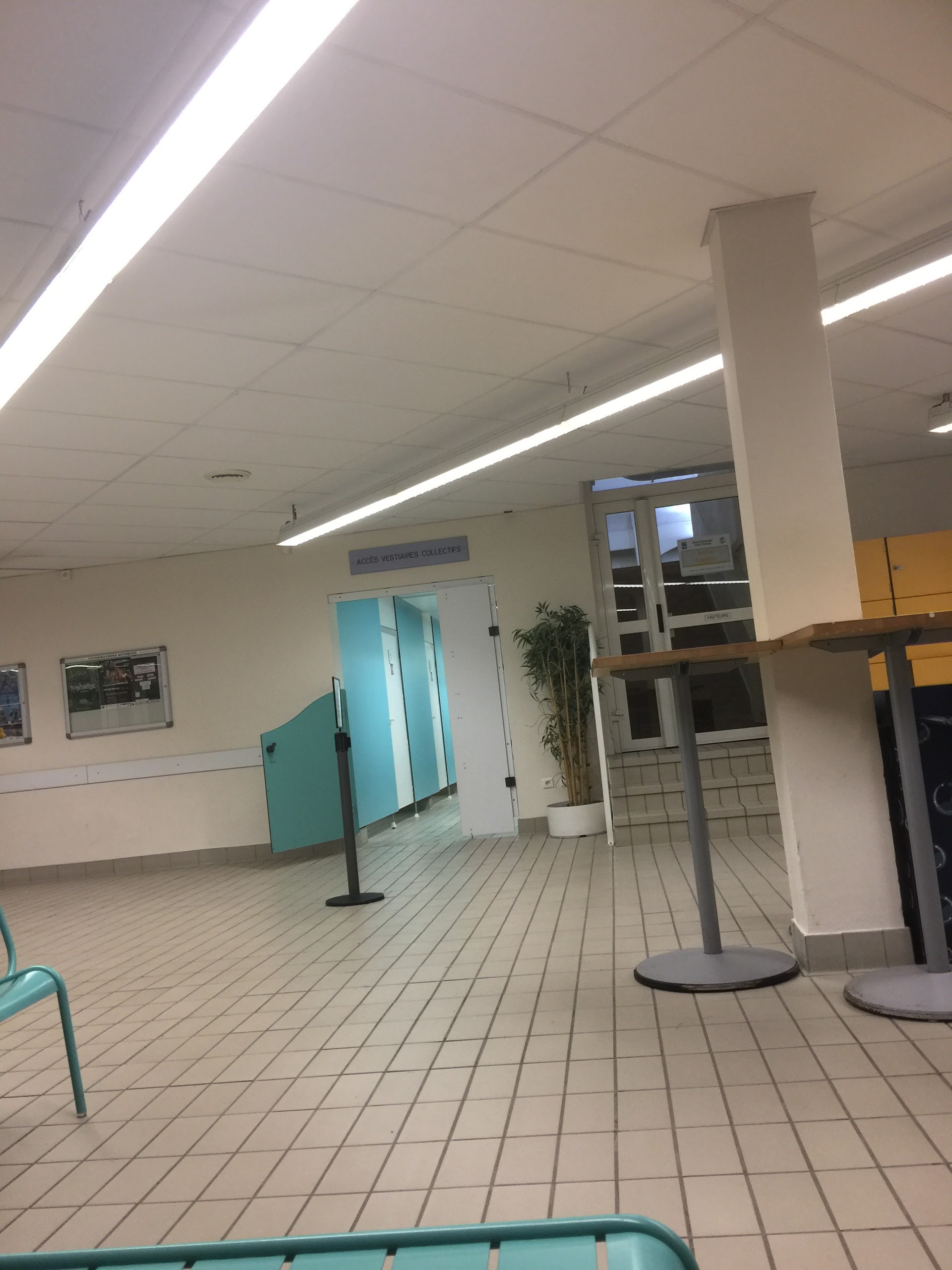 Vestiaires très sales , très peu de douches à disposition , casiers souvent inutilisables, patères dans les douches cassées, finalement entrée bien chère au regard de la prestation.