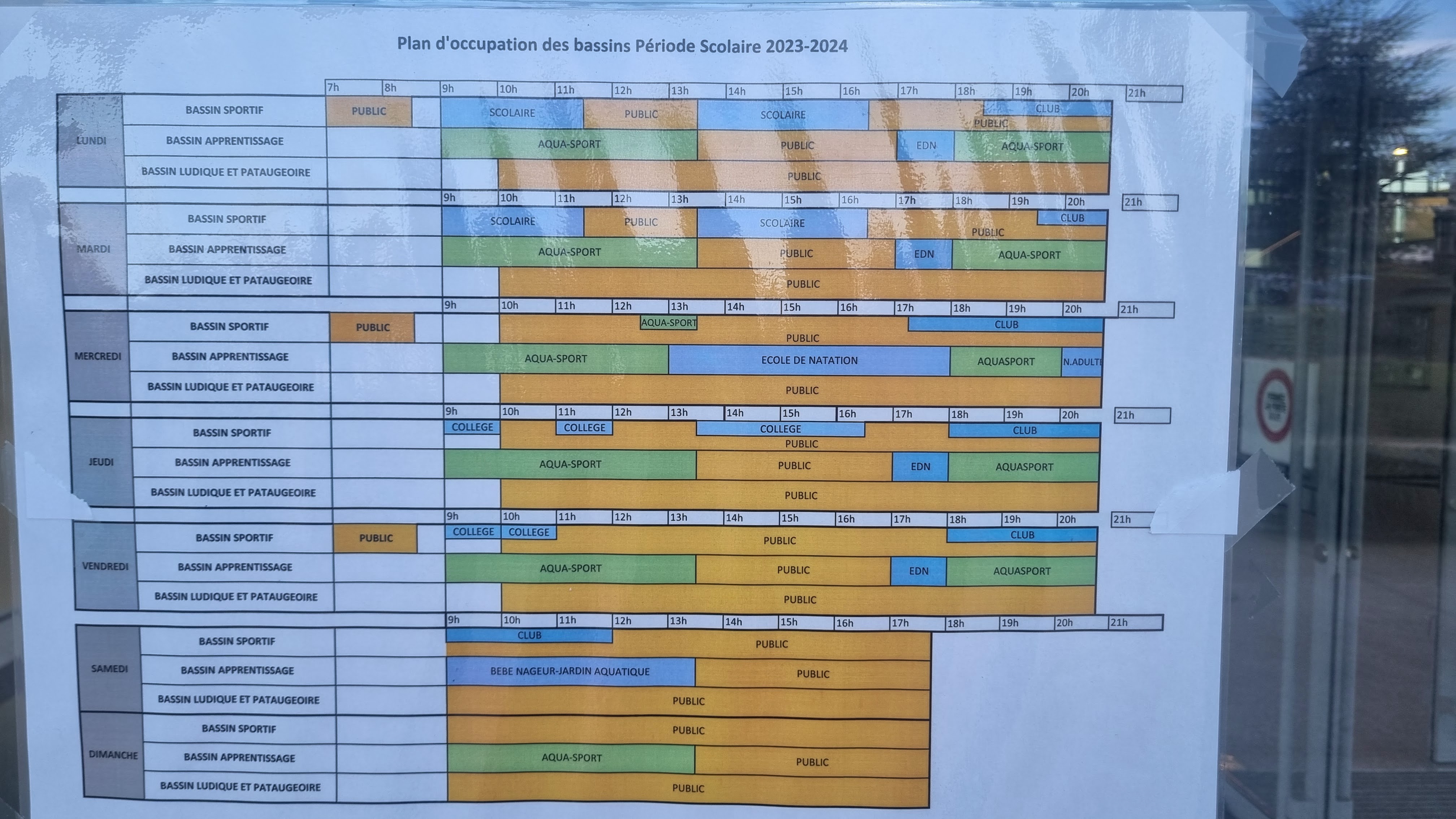 Sur Google écrit 20h arrive à 16h40 on ferme à 18h donc bassin quitte à 17h30 super pour mon beb suis resté ils m'ont quand même fait payer les 2 euros ( 18 mois ) et surtout quasi une des seules piscine à faire payer les moins de 3 ans