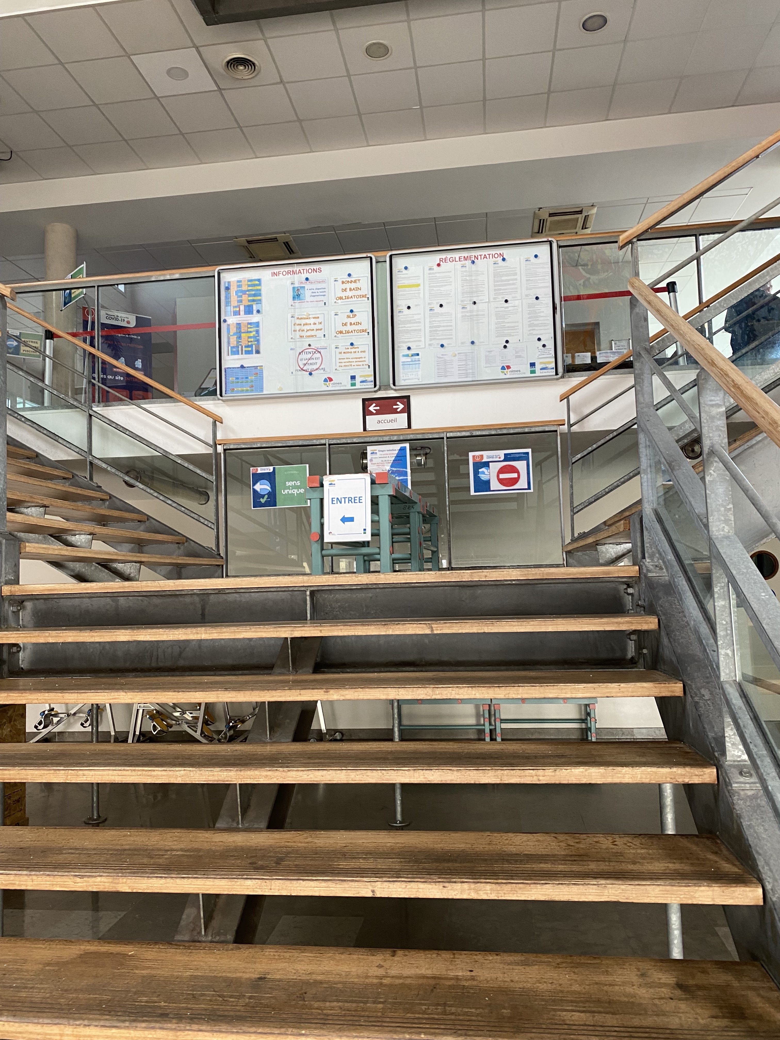 Il est rare de voir une piscine imposant les bonnets de bain, mais n'en vendant pas, obligeant à aller à decathlon alors que nous n'avons pas forcément le temps de faire tous ces allez retour! Il est aussi ridicule d'imposer un sens de sortie quand il n'y a personne ! A croire que la peur du corona grille les neurones et rends cet endroit innopérationnel.