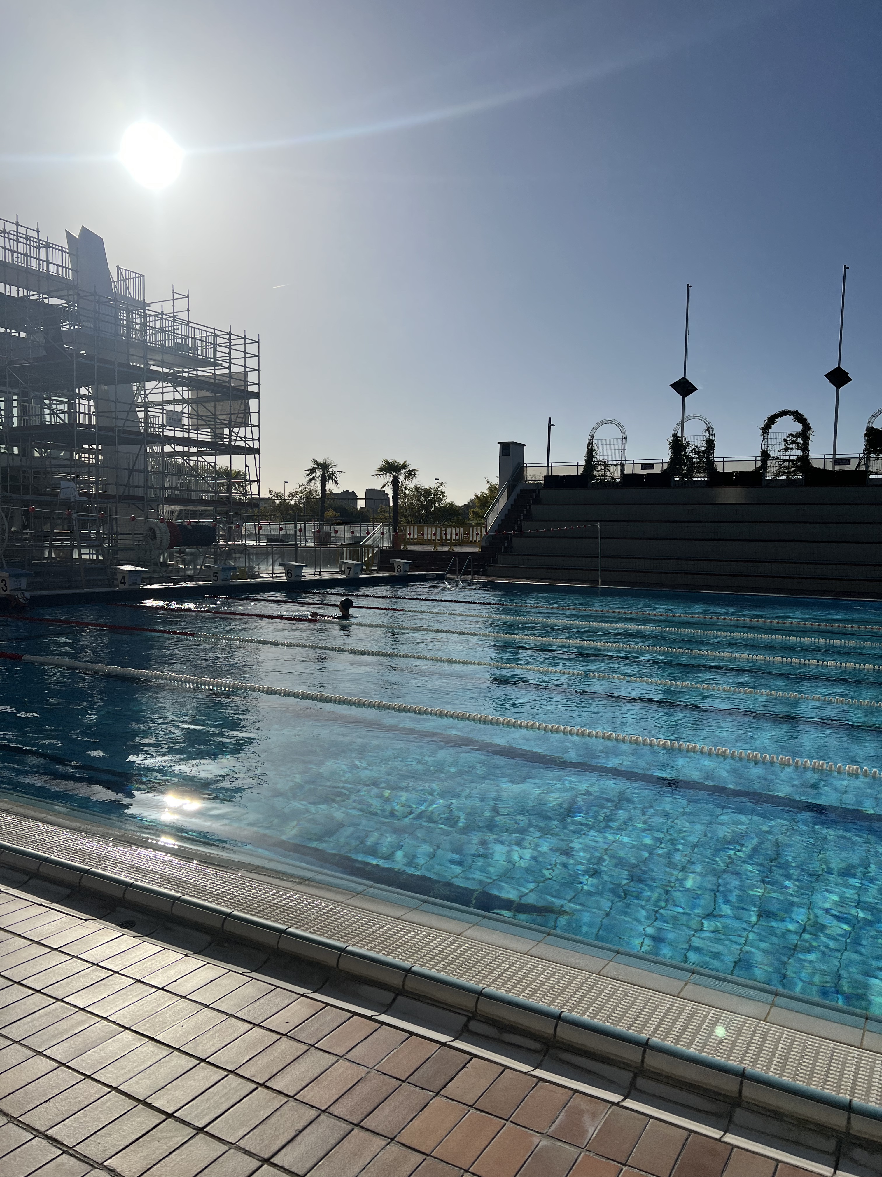 Enfin une piscine extérieure où on peut nager sans que des enfants/adultes traversent, et où les nageurs sont repartis par ligne d'eau en fonction du matériel :) Effectivement, ce n'est pas une piscine pour venir barboter en famille mais pour s'entraîner (d'où le nom de bassin Olympique). Cela faisait longtemps que je n'avais pas eu à slalomer entre des nageurs. Les vestiaires auraient besoin d'un petit coup de frais (vue les tarifs) et je trouve dommage qu'il n'y ai pas de tarif étudiant...