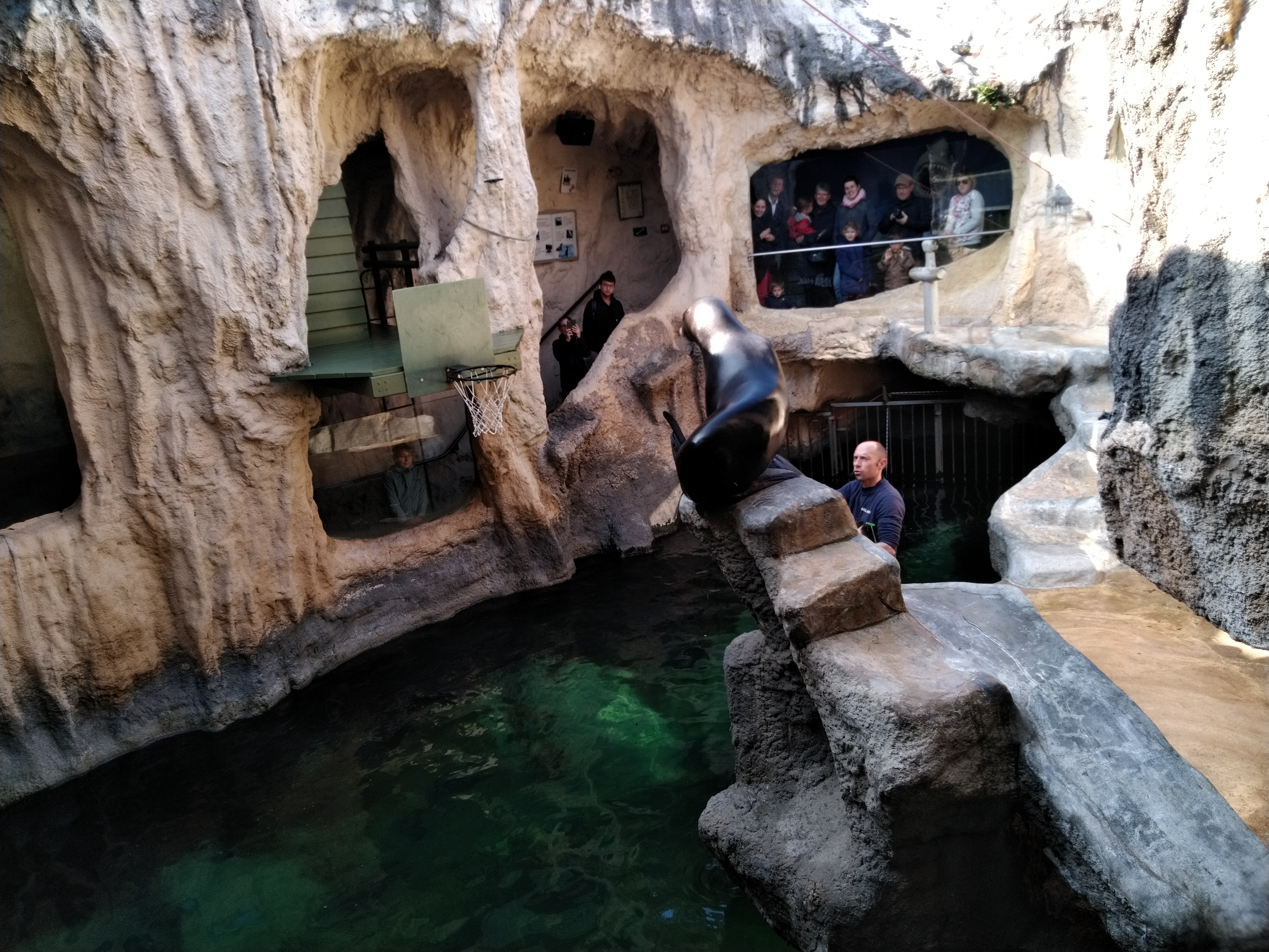 Beaucoup trop de monde, pour un si petit espace. Du coup, pour voir le spectacle, il faut se placer aux endroits stratégiques très longtemps à l'avance (en plein soleil et avec des enfants, c'est pas gagné !) Pas assez de pédagogie sur la mer, la protection des espèces...