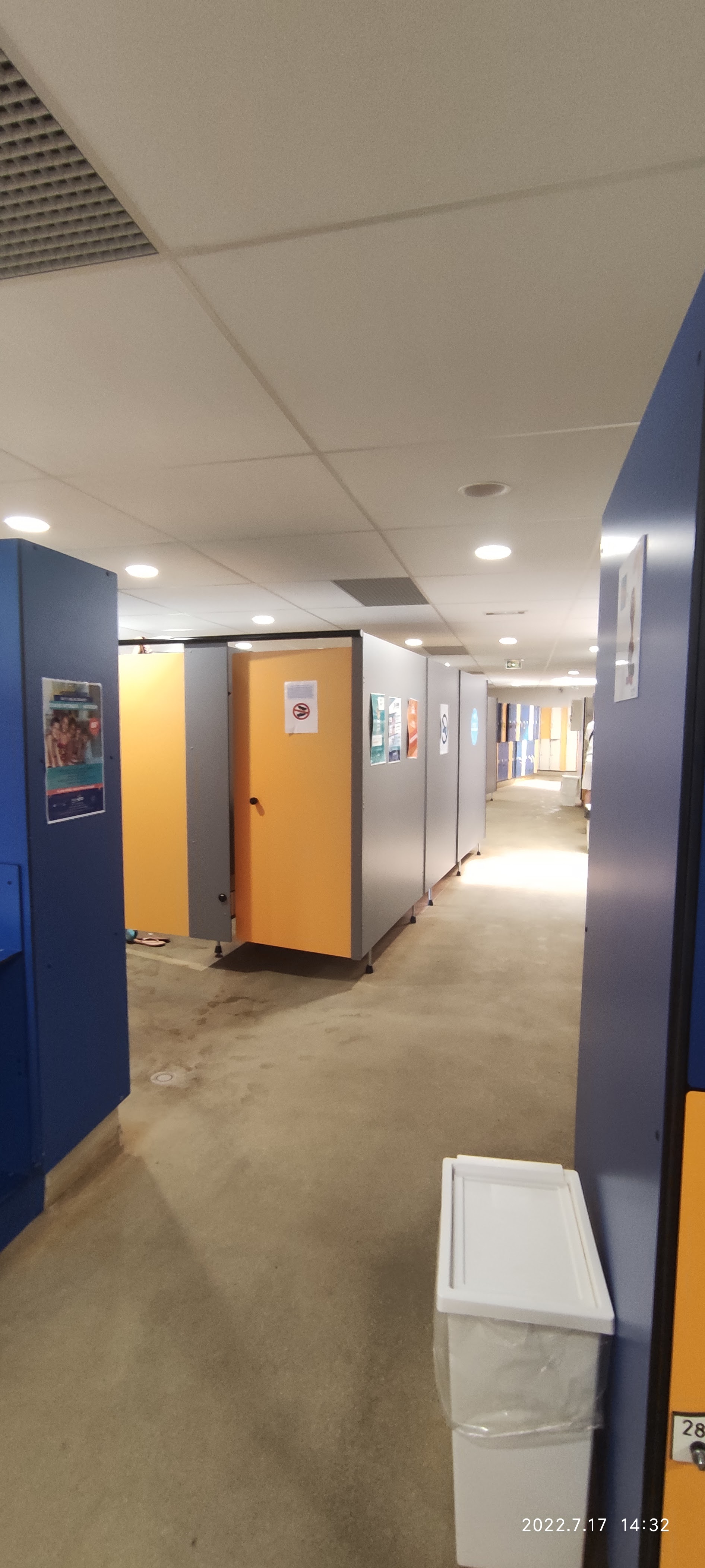 Énorme liste de recommandations à l'accueil (interdiction d'avoir un sac à l'extérieur...) et ensuite on arrive aux toilettes où il n'y a plus de savon. Idem dans les douches. Et le bassin extérieur ?! Inaccessible et aucune communication...