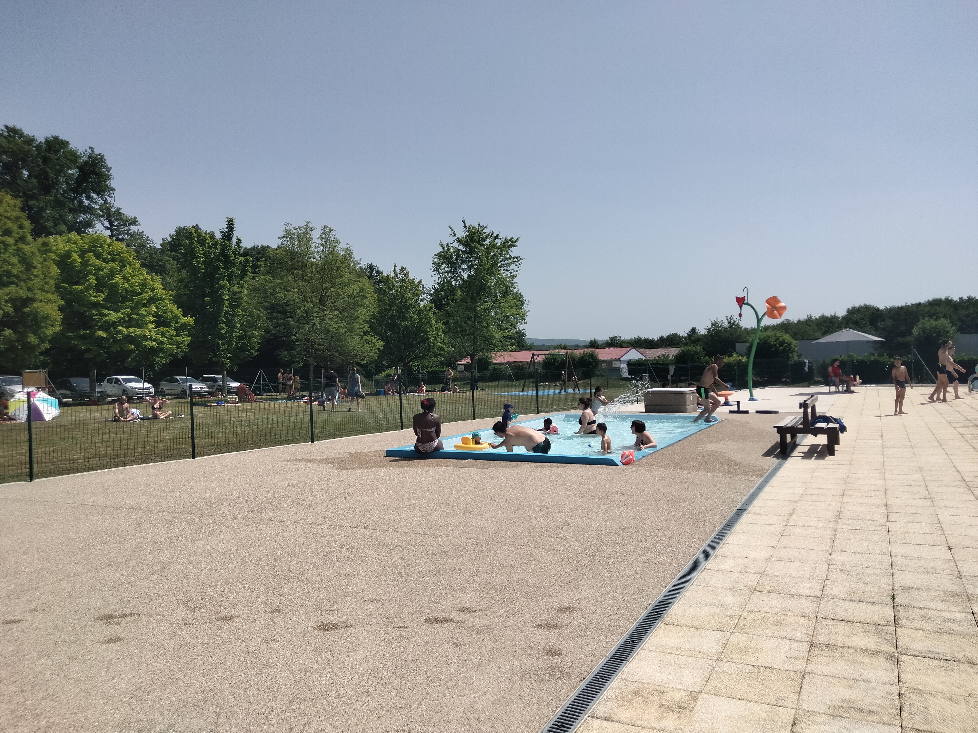Petite piscine surveillée 🩴située en milieu rurale 🏊, elle possède un grand bassin unique de 25 mètres et, un bassin pataugeoire pour les tout petits 🧞! Un bloc sanitaire complet : douches 🚿, toilettes 🚻, et, j'ai noté deux distributeurs de boissons 🧃, et de grignotage 🥨!!........ beaucoup de monde mais je remarque que tout est bien géré.!! le parc, bien propre est très ombragé 🌳, quelques tables, le tout est complètement clôturé !! .... accessible aux personnes à mobilité réduite ♿, il y a un très grand parking !!.…....en bref, un endroit sympathique et très familial 🥰 avec quelques jeux pour enfants !!