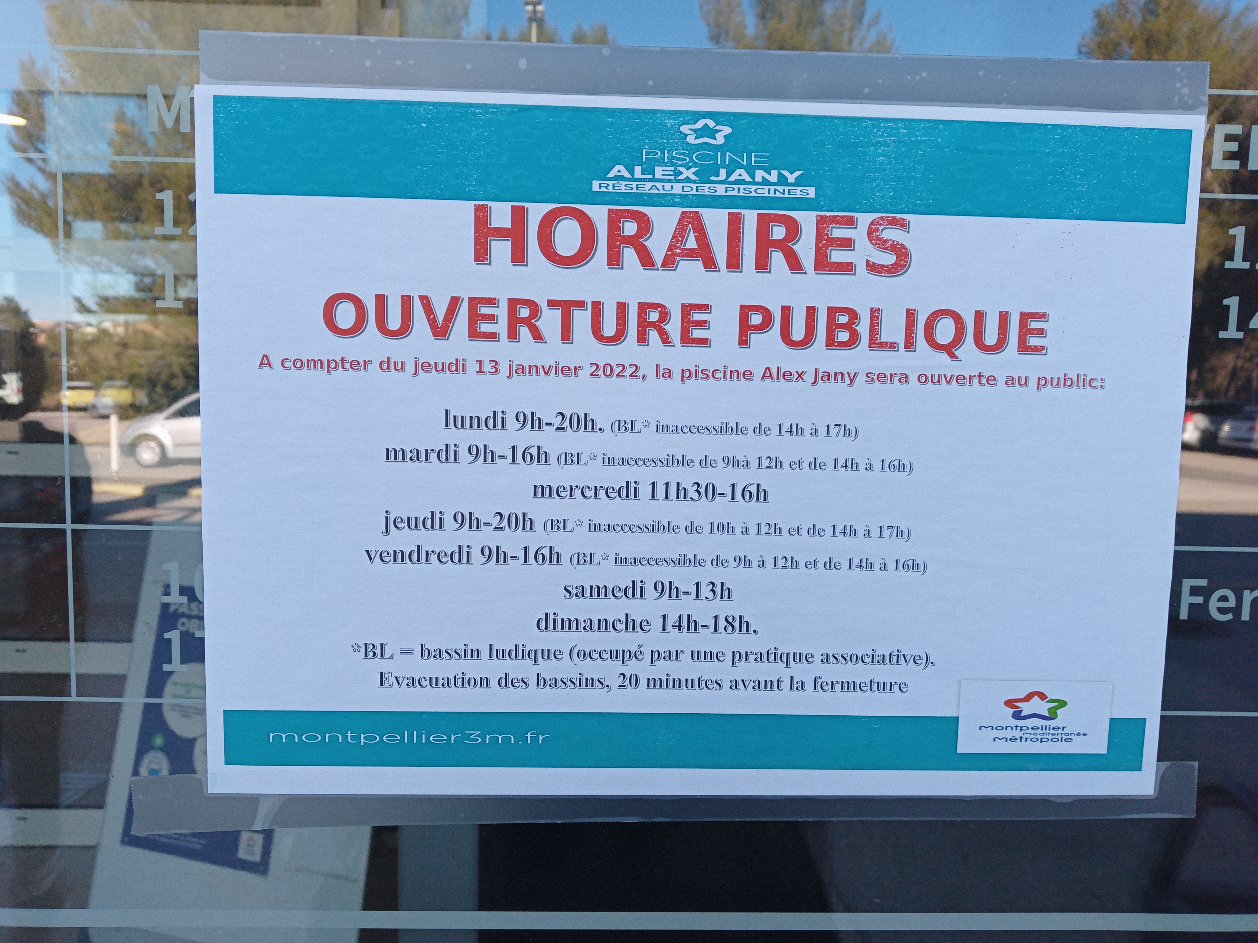 Bonne piscine ! Maillots, bonnets et lunettes de bain en vente à l'entrée (distributeur). Et parking.