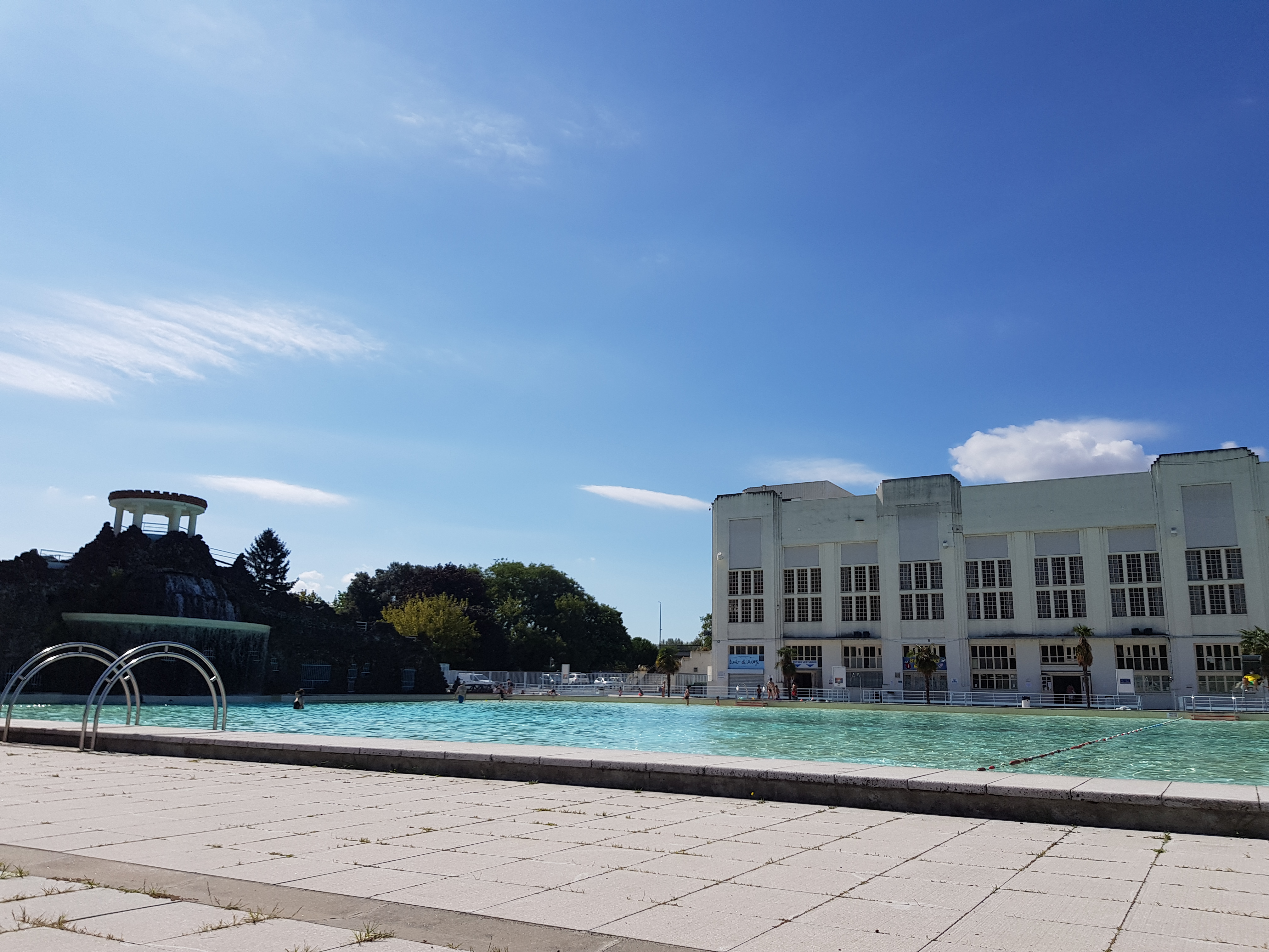 On adore cette piscine. C'est quand même un batiment particulier en terme d'architecture art déco et la taille de la piscine est énorme (150 m sur 50m ! ) avrc en son bout une cascade rocailleuse. Il y a une grande partie verdoyante où s'installer sous les arbres. Bien que situé en plein centre ville, on n'est pas pollué par les bruits de la ville. Il y a un parking vélo à l interieur et les vélos sont donc sous surveillance. Je recommande !