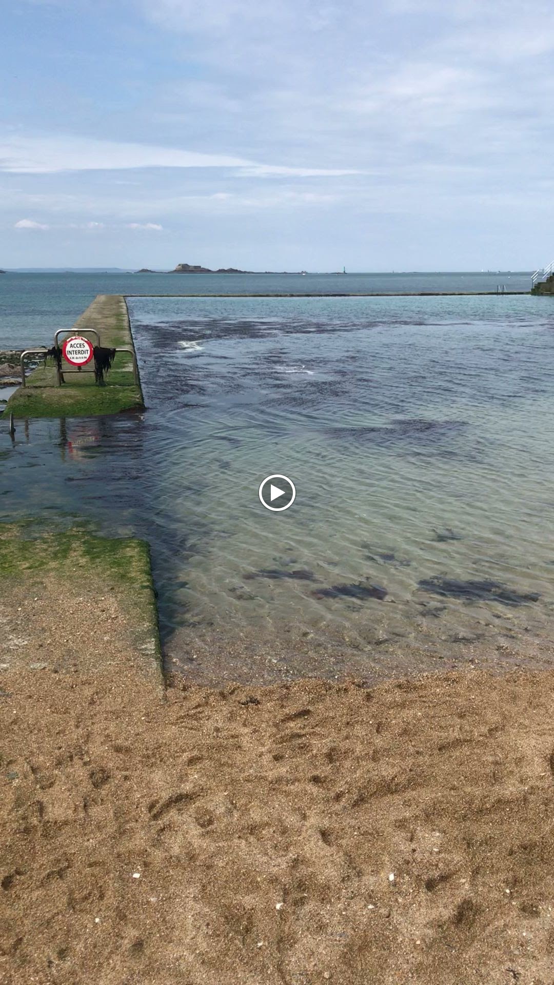 Endroit génial, possibilité de se baigner toute la journée même à marée basse. eau propre, assez claire lieu sûr pour enfants et adultes, pente très progressive depuis le bord et deux sauveteurs sur le bord bétonné du bassin près du plongeoir.