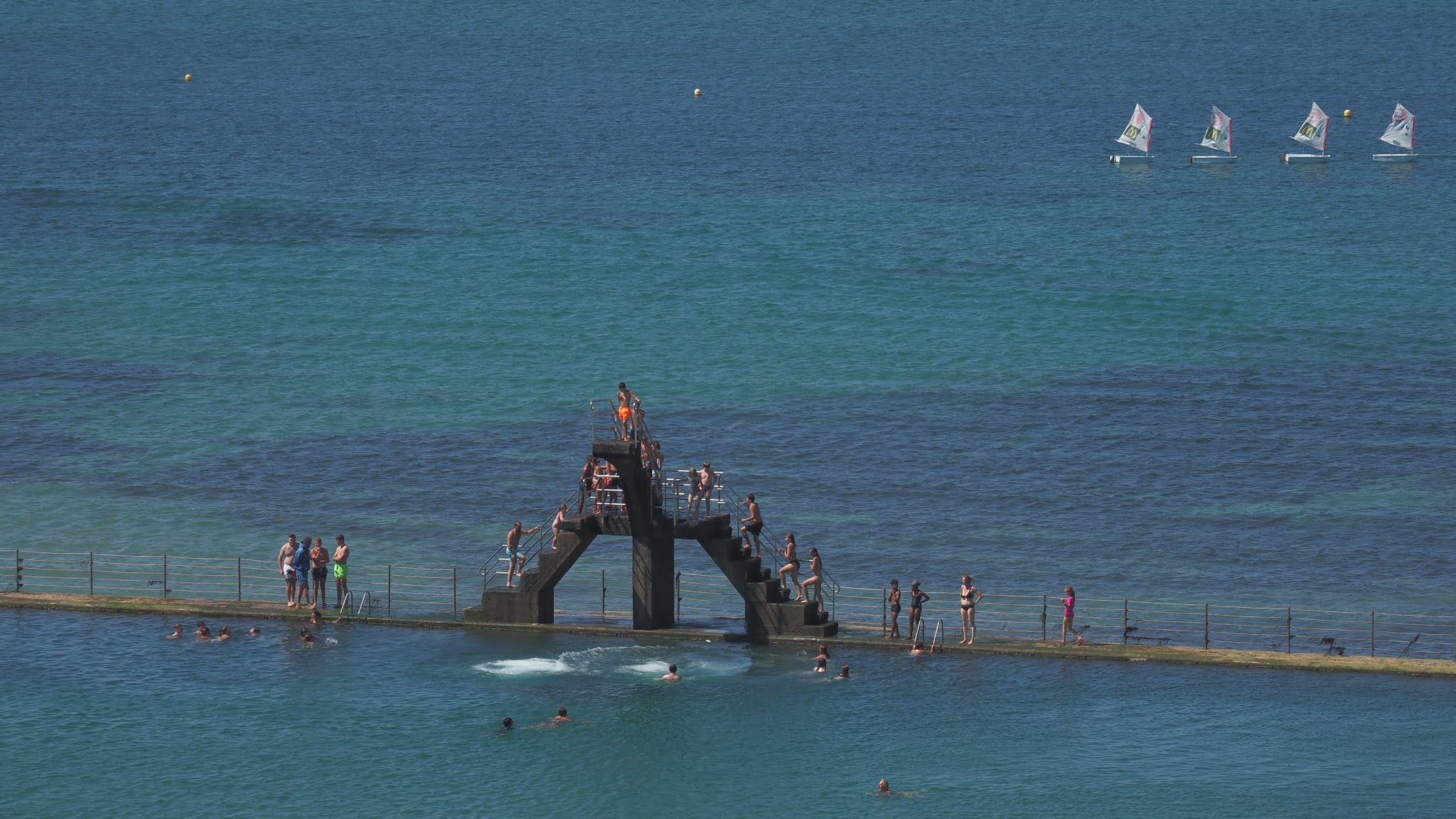 Parfait pour plonger et sauter depuis 3 ou 5 mètres. Le plongeoir permet de prendre du recul et d'admirer les remparts de Saint Malo qui dominent le bassin. Lorsque la mer monte, la piscine est entièrement submergée et ne fait plus qu'un avec les flots. A ce moment, seul le plongeoir sort des eaux.