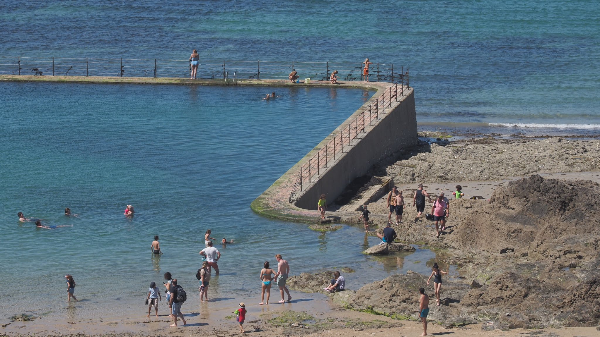 Piscine artificielle qui se remplit au gré des marées. En été, l'eau à l'intérieur est plus chaude que l'eau à l'extérieur, mais trop de gens nagent dans la piscine et je pense que ce n'est pas très sain... mieux vaut bronzer sur la plage et nager à l'extérieur de la piscine.
