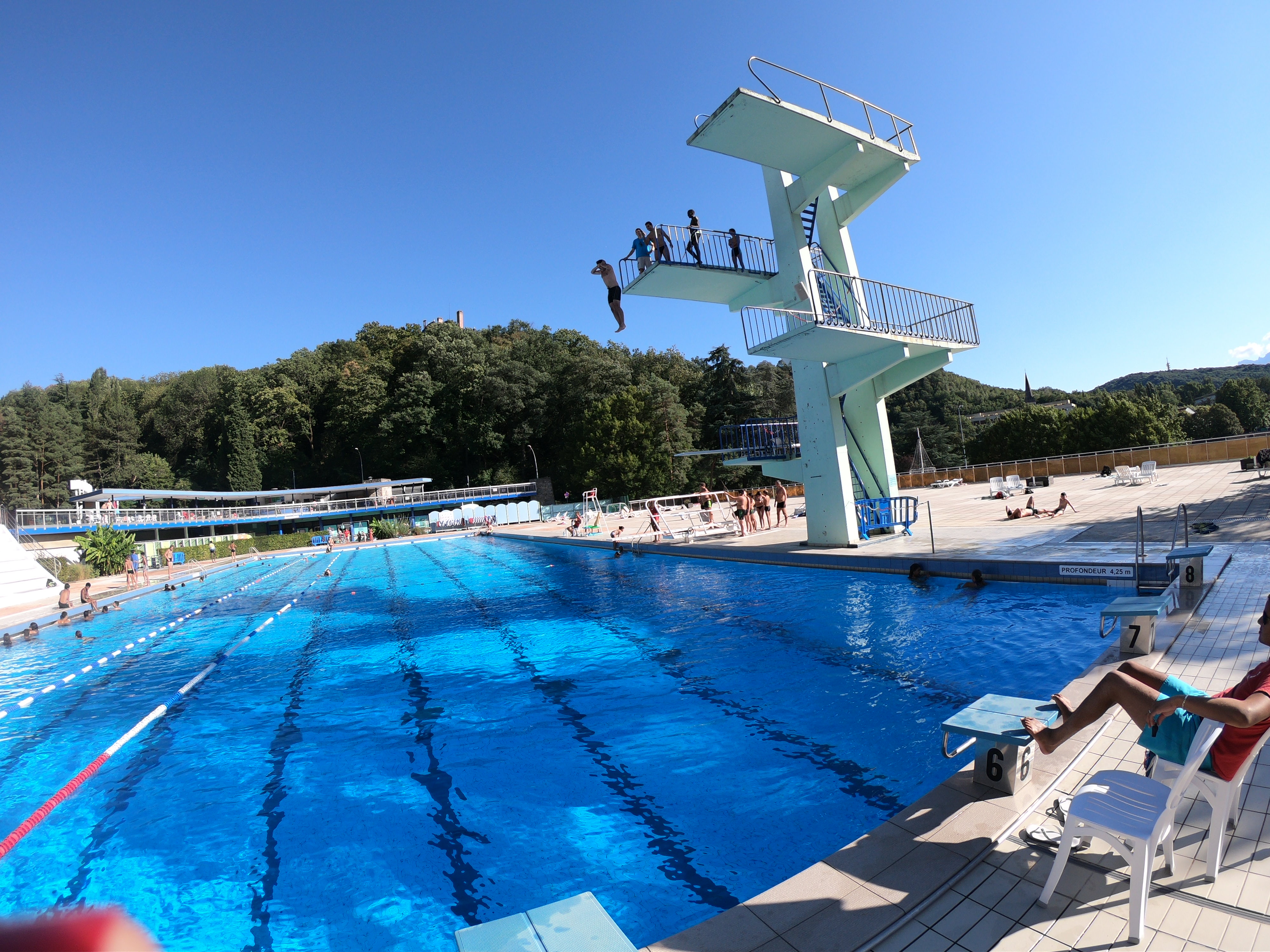 Super le bassin extérieur de 50m avec une ligne d eau pour les nageurs. Les plongeoirs sont bien surveillés poir les jeunes