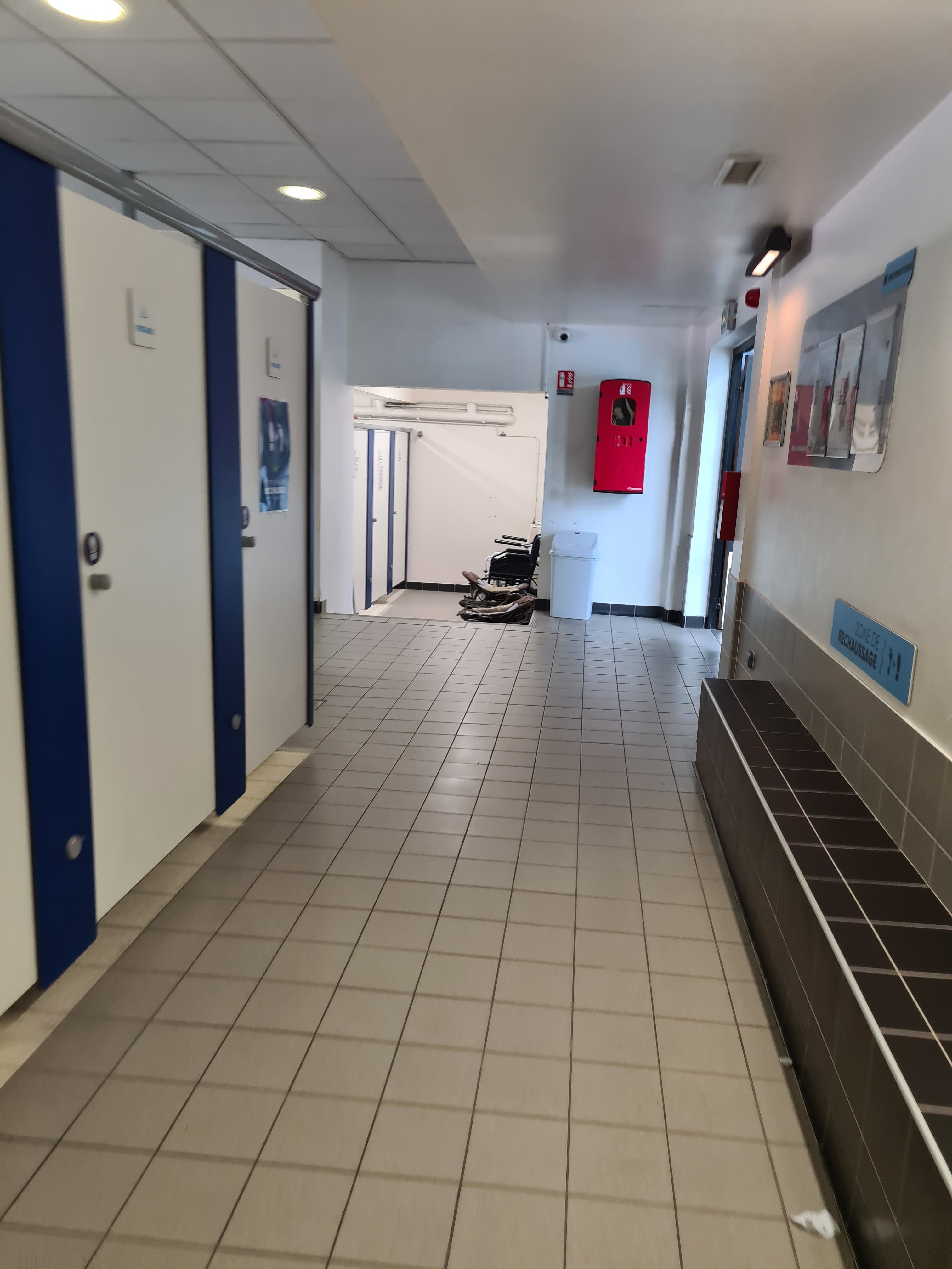 Beaucoup de monde donc vestiaires difficilement maintenus propres. un rafraîchissement ne serait pas mal dans les douches. c'est une piscine avec plusieurs bassins, ce qui permet de repartir la foule