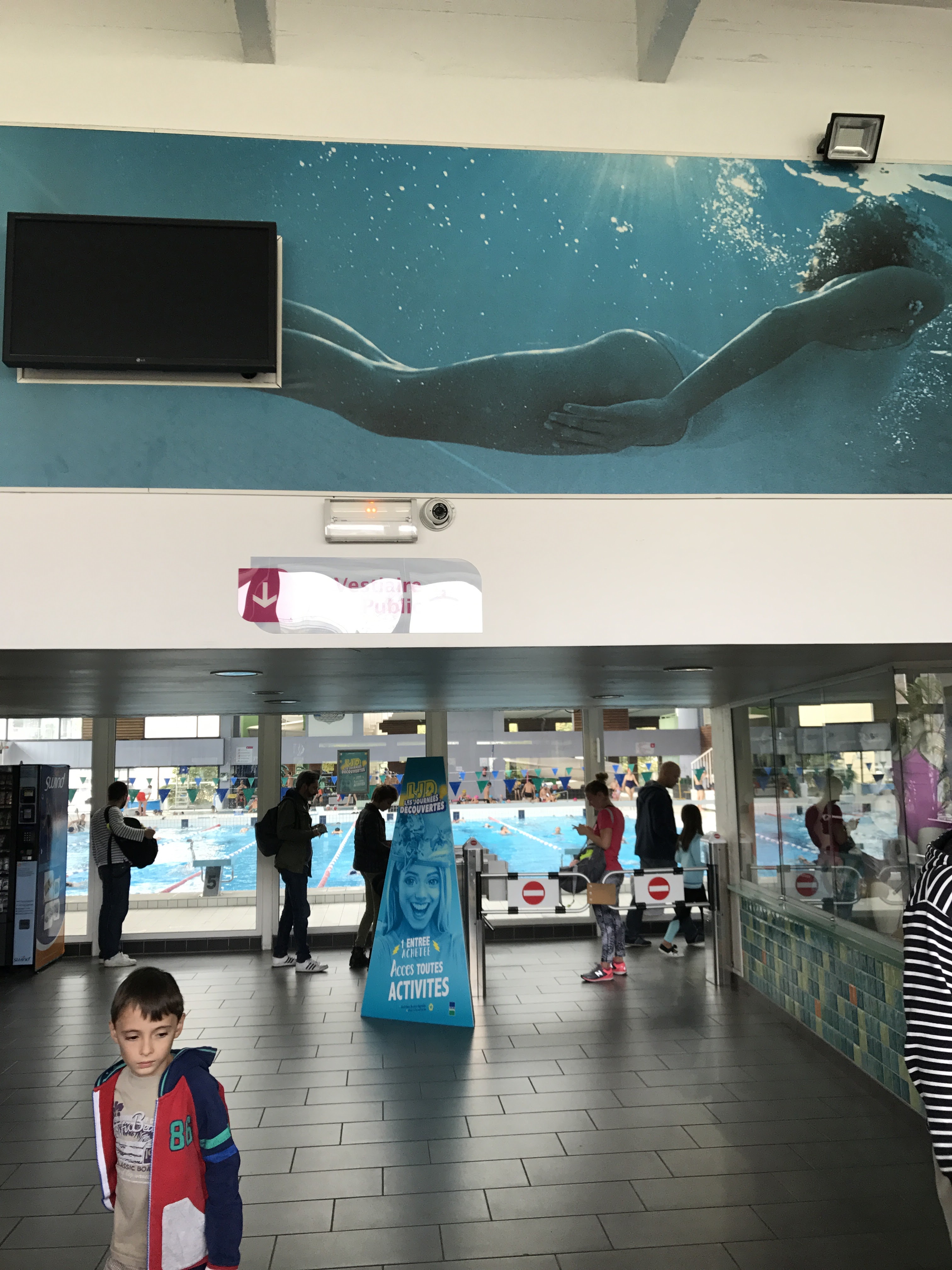 Mais que lui arrive-t-il à notre piscine ? On a été aujourd’hui : c’était un zoo. Alors j’entends c’est le Pont de l’Ascension et il y avait du monde. Mais vraiment c’était déplorable. La belle pelouse extérieure : fermée parce que… la cafétéria est fermée (???). Quel est le rapport ? Cette pelouse où on s’installe à l’ombre et au calme avec les enfants entre deux nages… interdite donc. Les chaises longues sont entassées les unes à côté des autres devant les baies vitrées de la piscine. Le « coin fumeur », lui, est sur la pelouse par contre et bien autorisé : donc vous pouvez aller mettre votre serviette et fumer votre cigarette, juste DEVANT de la piscine extérieure comme ça vous bronzez et tout le monde profite de l’odeur de votre cigarette. Les fumeurs ont le droit à leur pelouse. À l’intérieur : des ados qui sautent les uns sur les autres au niveau du bassin bébé. Maîtres nageurs qui ne disent rien. Un groupe de nageurs de Meudon (AS Meudon pour ne pas les nommer…) facile 16-18 ans, une bonne dizaine, qui ont amené une balle de water-polo et qui jouent, et font des bruits de horde de gorille… dans le bassin enfant. Sous les yeux des maîtres nageurs, qui en vrai ne sont là que pour demander aux gens de mettre leur bonnet sur la tête, ils ne font rien d’autre. La balle de water-polo a failli taper mon bébé - pas un mot. Une ado voulant faire couler sa pote a poussé mon bébé sous l’eau : toujours rien. Des jeunes qui font de l’apnée par dizaine : pas un mot. On s’échappe à la pataugeoire pour respirer un peu… et la porte vitrée est ouverte pile devant. Courant d’air de fou. Notre pitchoune secouée, frigorifiée avec le vent qui entre, on est partis. Moitié des douches qui ne marchent pas, pas de savon dans les douches ni les wc, WC immondes à 15h, vestiaires degueus. Et donc, cafétéria fermée. On se demande pour quoi on paye.