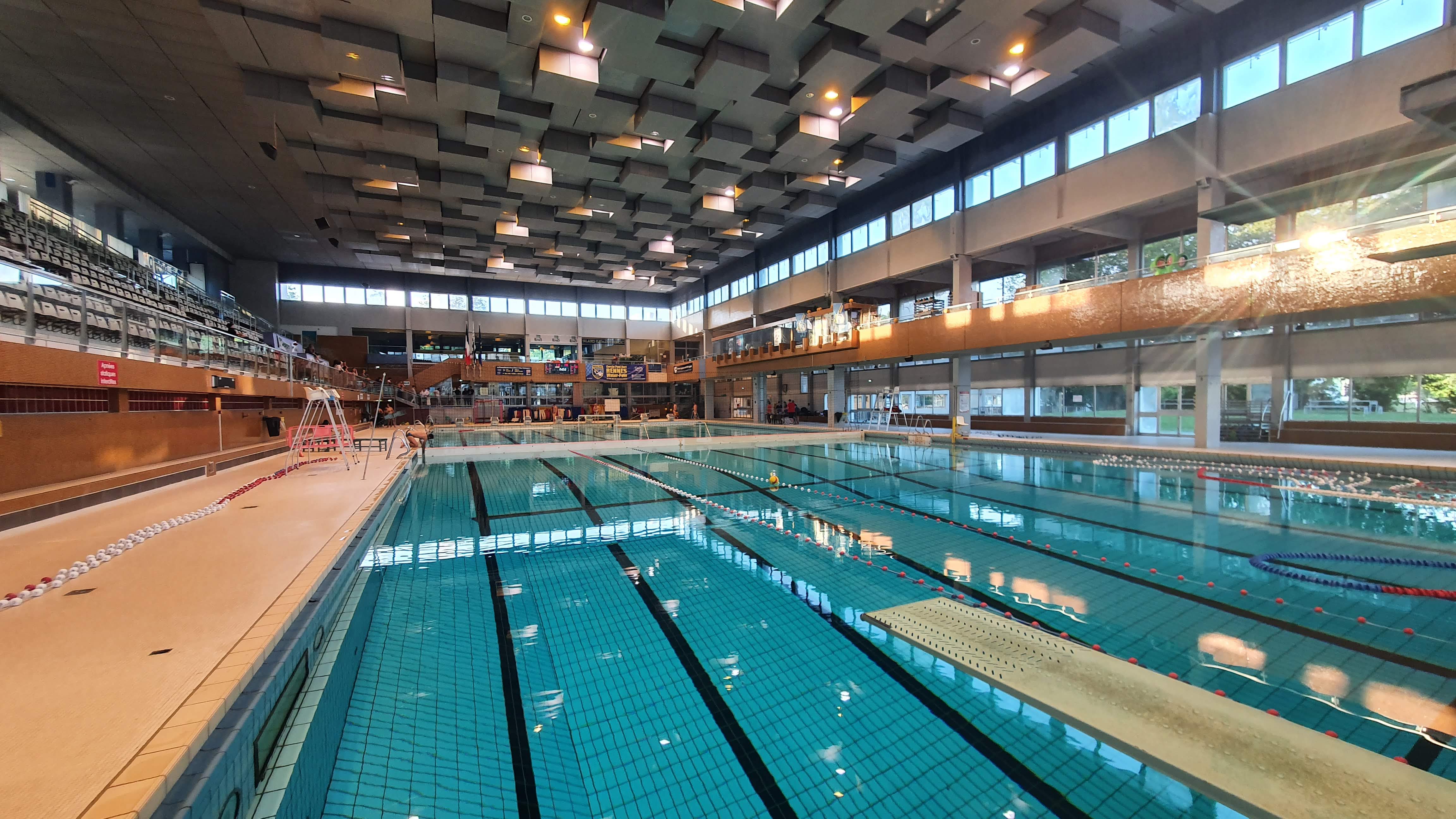 Une belle piscine, le seul bassin de 50m de rennes. Des couloirs de nage adaptés +/- respecté. Actuellement en travaux en espérant un nouveau bassin fonctionnel, propre, aux horaires étendus accessibles à tous ! Points négatifs cependant : un défaut de propreté criant +++ ... Les vestiaires sont vraiment salles : le sol, les murs des cabines ... un peu limite. De nombreuses personnes ne sont pas respectueuses ... De plus, pas de nécessité de mettre de bonnet de bain ... (quasi jamais vu en bassin municipal de natation...) permettant de ramener de nombreux cheveux coincé dans les maillots et matériel de nage. De plus les horaires en ouverture 50m sont relativement restraints pour l'envergure de la ville ... parfois beaucoup de monde dans les couloirs de nage, aux heures de pointes lorsque la moitié des bassin est réservée ou mise en 25m. De plus, le prix est vraiment élevé pour une simple piscine municipale.
