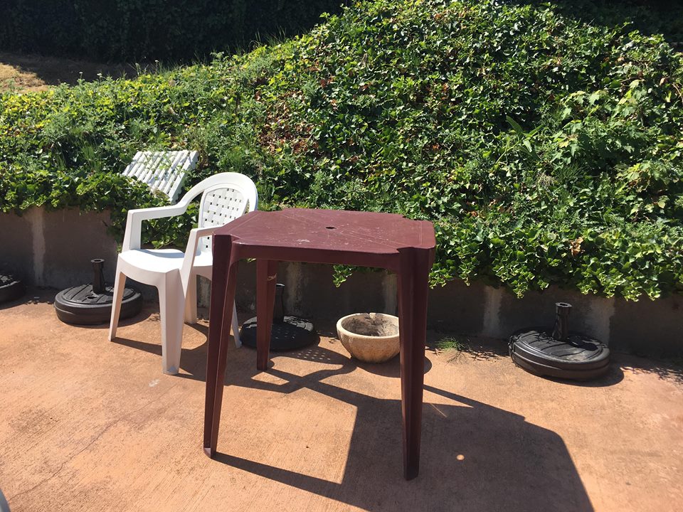 Magnifique espace extérieur. De bon matin pas un chat. Belle détente assurée avec les jets d'eau et le ciel bleu.
