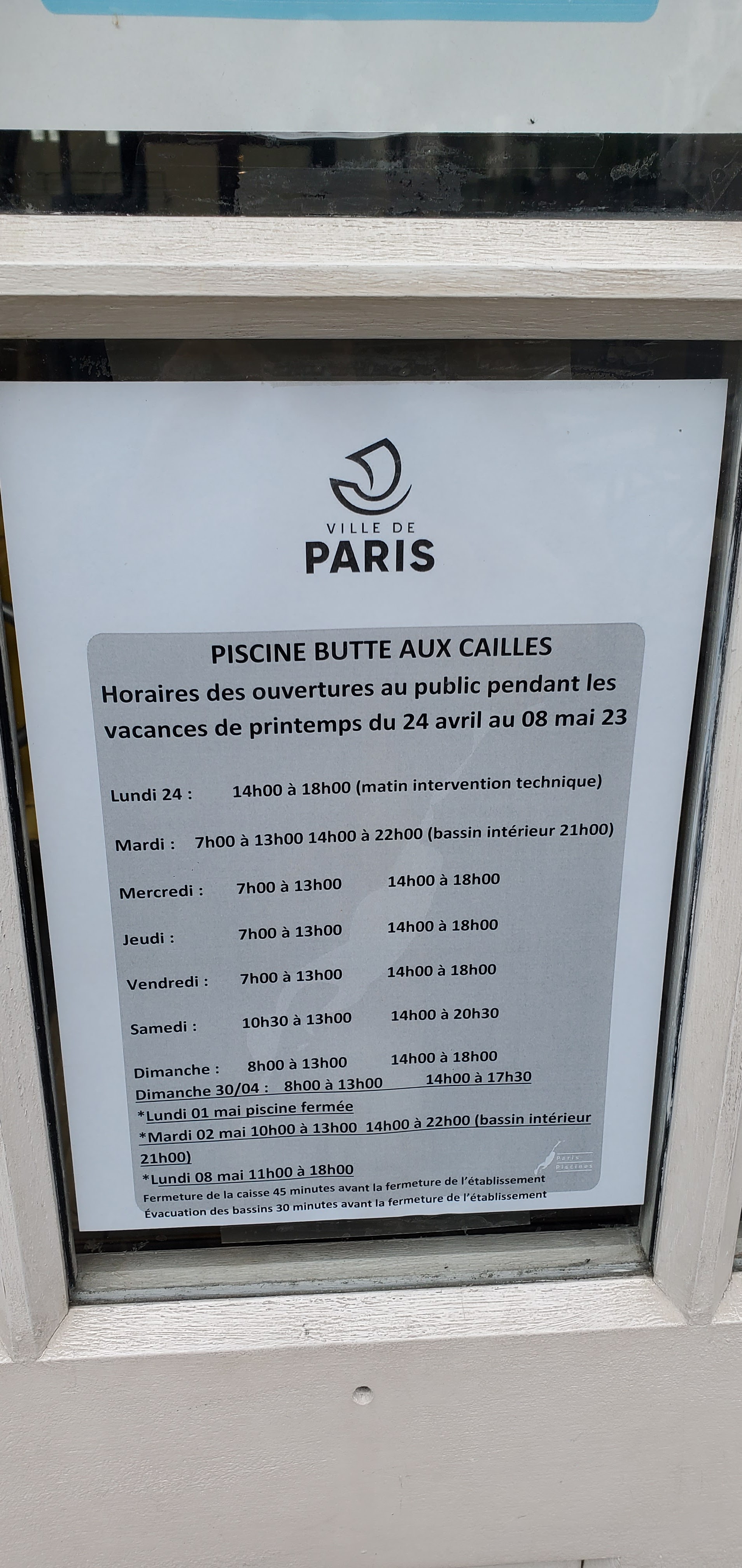 On a pas réussi a rentrer. Periode de vacances scolaire. Les horaires n'étaient pas à jour sur le site ( de la mairie de Paris) merci a la maintenance ! La piscine juste avant était fermer pour travaux puis celle si ouvres a 17h15. Avec deux petits de -de 3ans un vrai bonheur ( arriver avant 16h ) Sans parler de la délicatesse des employés.