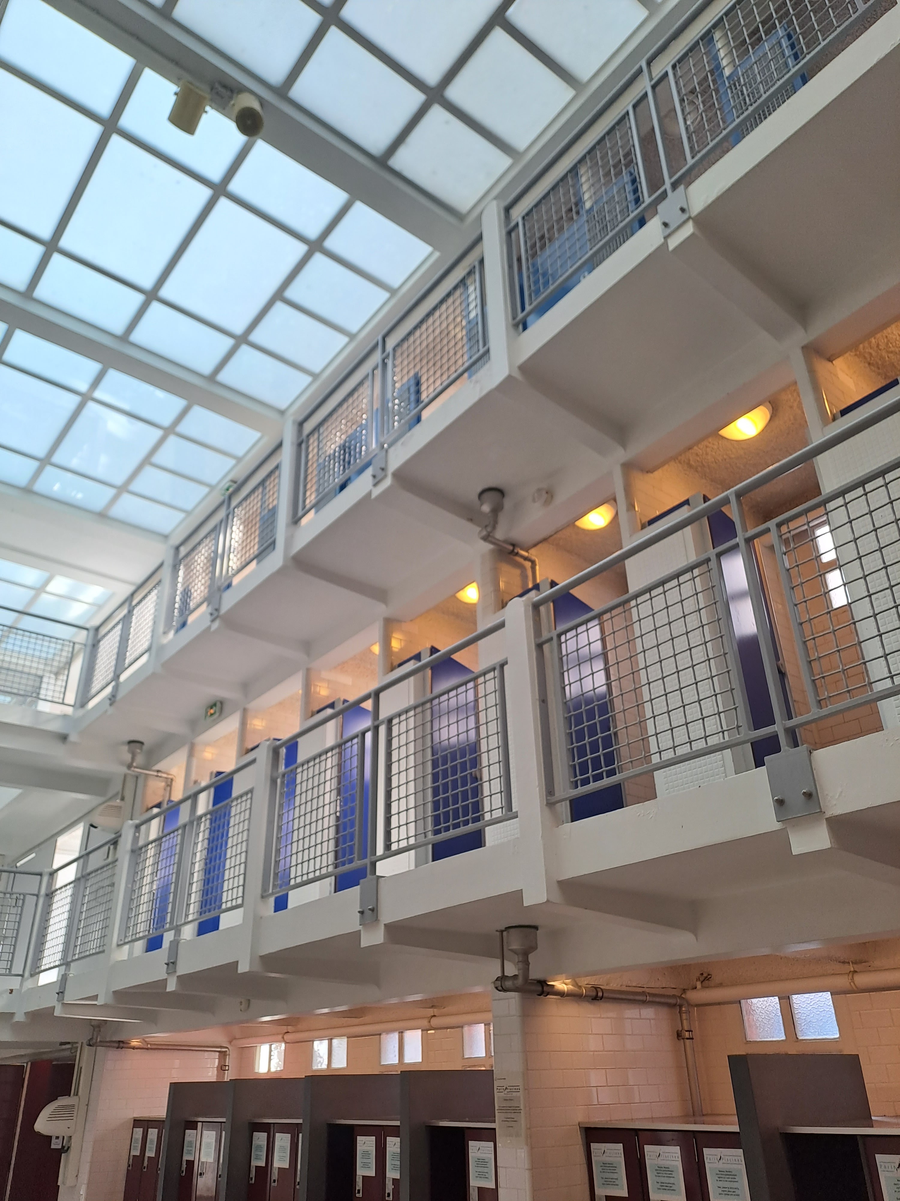 Piscine un peu bondées mais un dimanche ensoleillés à paris faut pas s’étonner Achat par cb via une borne bleu et éviter d’attendre Douche un peu HS quand c’est la fermeture et que tout le monde sort des bassins en même temps . Original les vestiaires qui font penser à un emprisonnement .