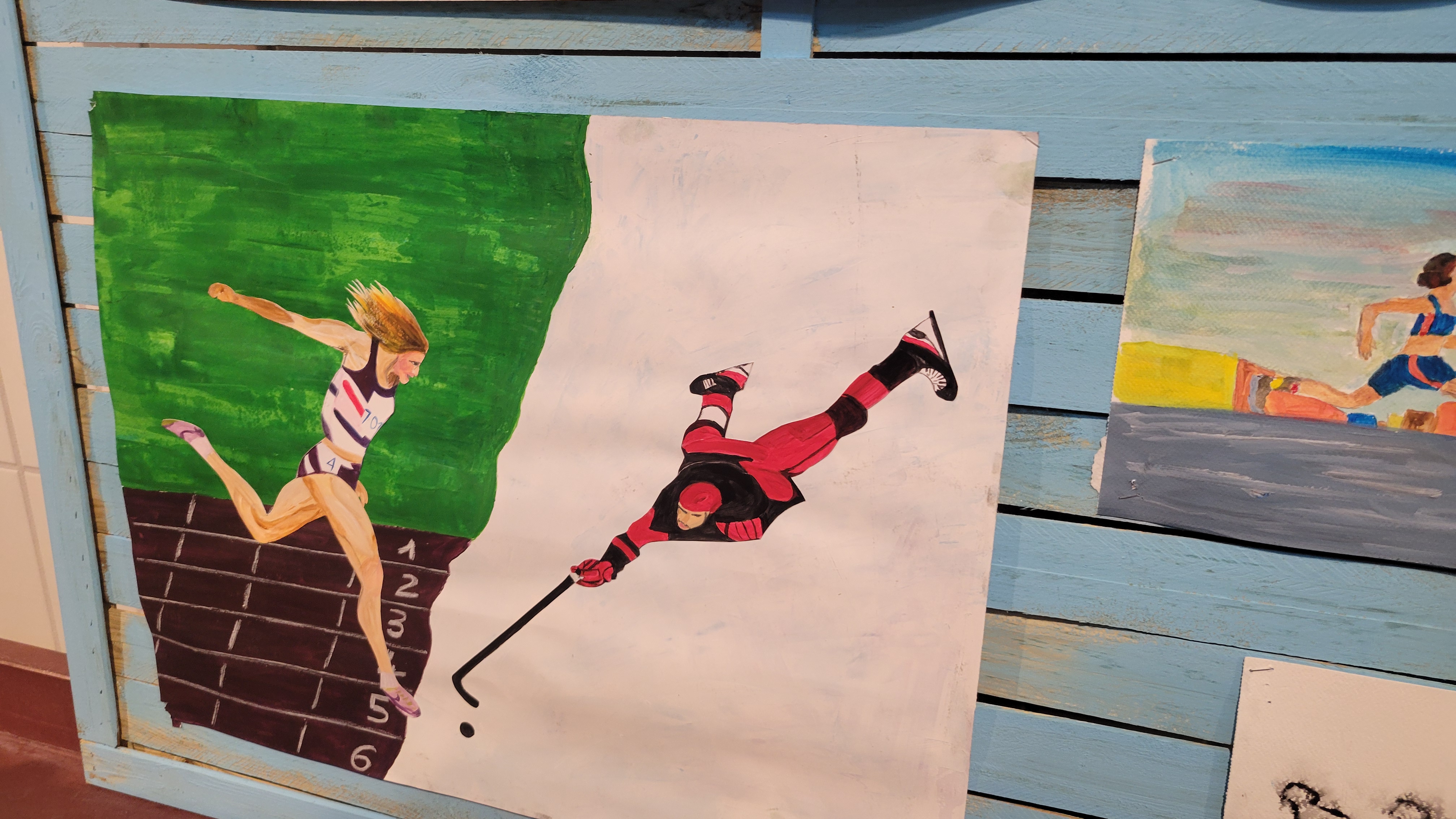 Vernissage de l'exposition immersions des ateliers arts plastiques des Centres Paris Anim' à la piscine de la Butte aux Cailles ( dans le 13ème arrondissement ) démonstration de natation synchronisée et d'un match de water-polo. Un très agréable et riche moment de découvertes !