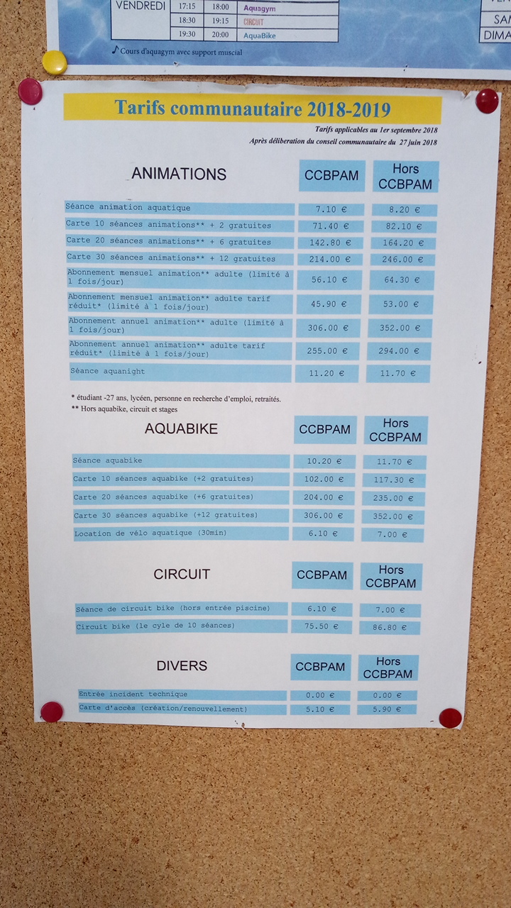 Le tarif est vraiment le gros point noir ....qui plus est lorsqu'on habite hors communauté de communes ....c'est pas comme ça qu'on va attirer les baigneurs😠 ! De plus les prestations ne sont pas extraordinaires.