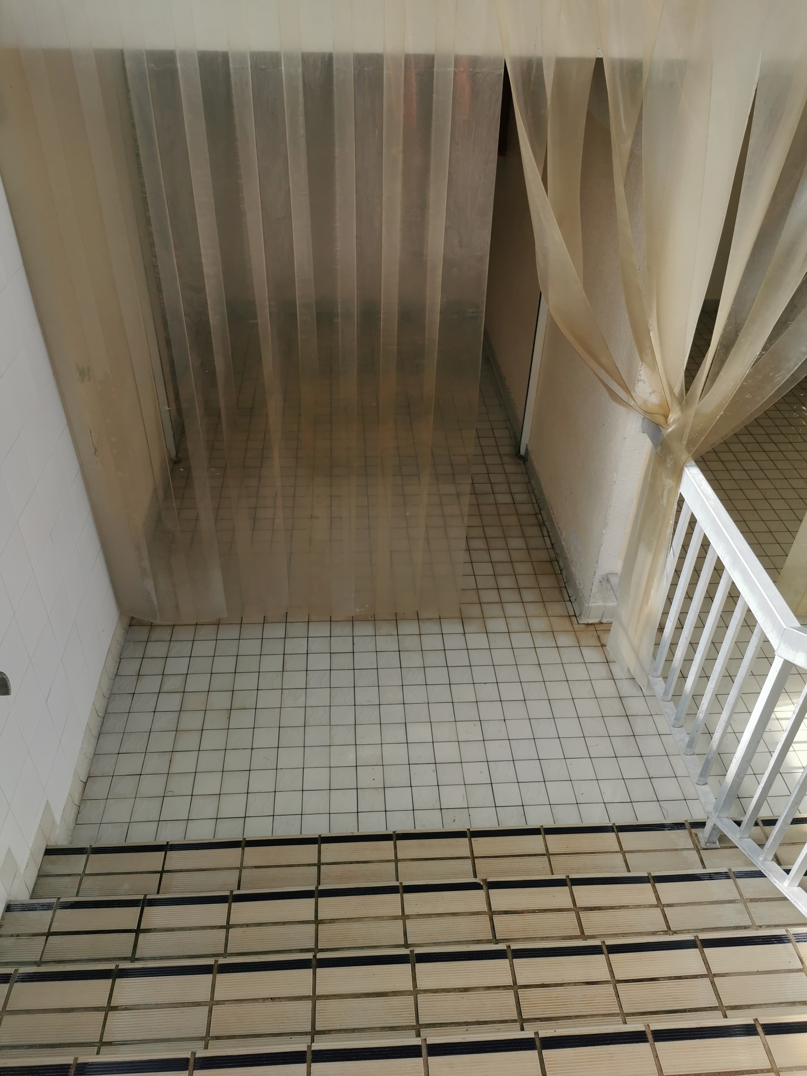 Escaliers dépourvus de revêtement anti dérapant. ...risques de chutes! Attention.