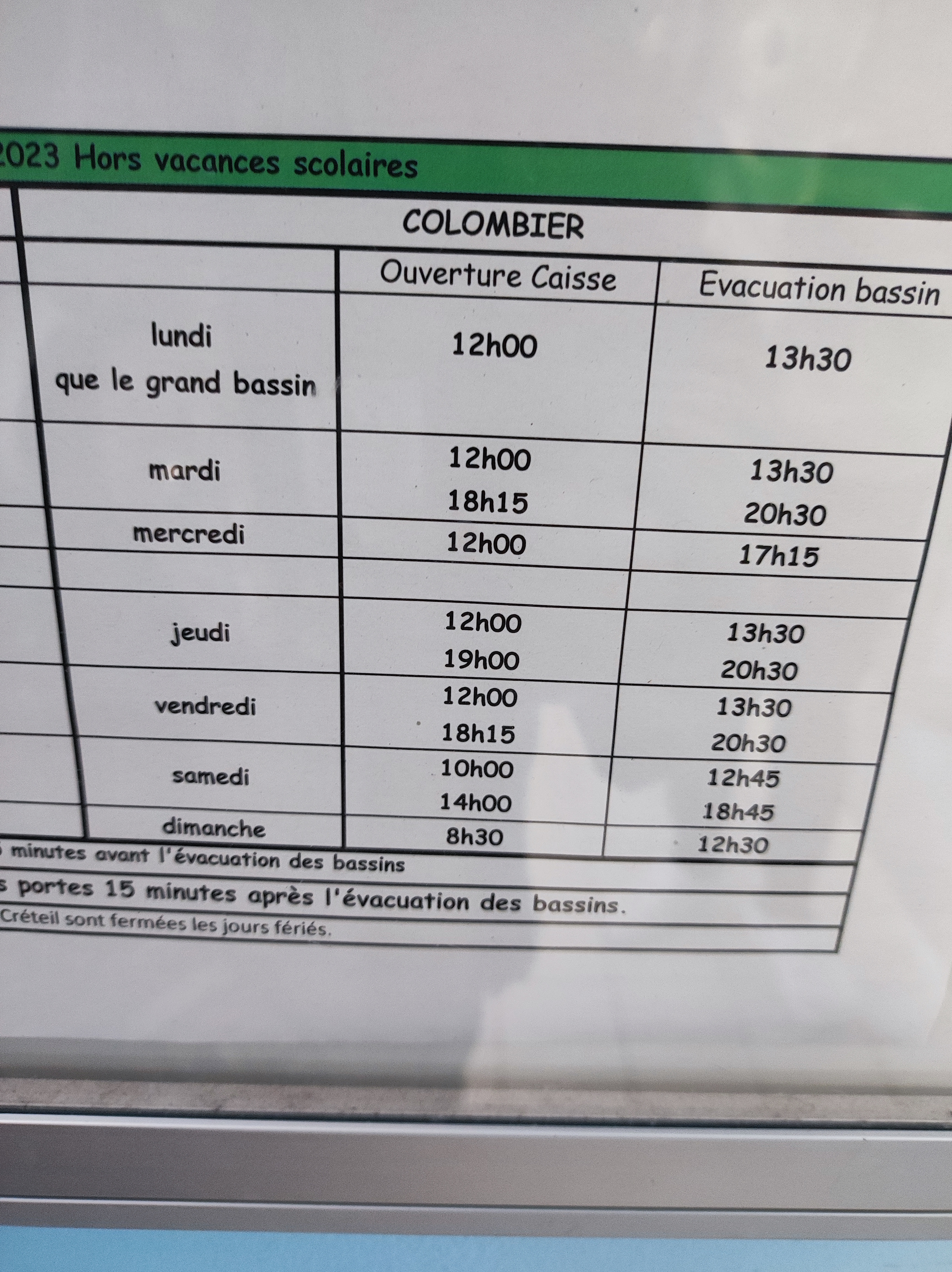 2 piscines fermées pendant toutes les vacances scolaires de décembre 2021 COLOMBIER + LEVRIERE. Alors que internet indique ouverte. Pas de message de fermeture sur répondeur, débrouillez vous.