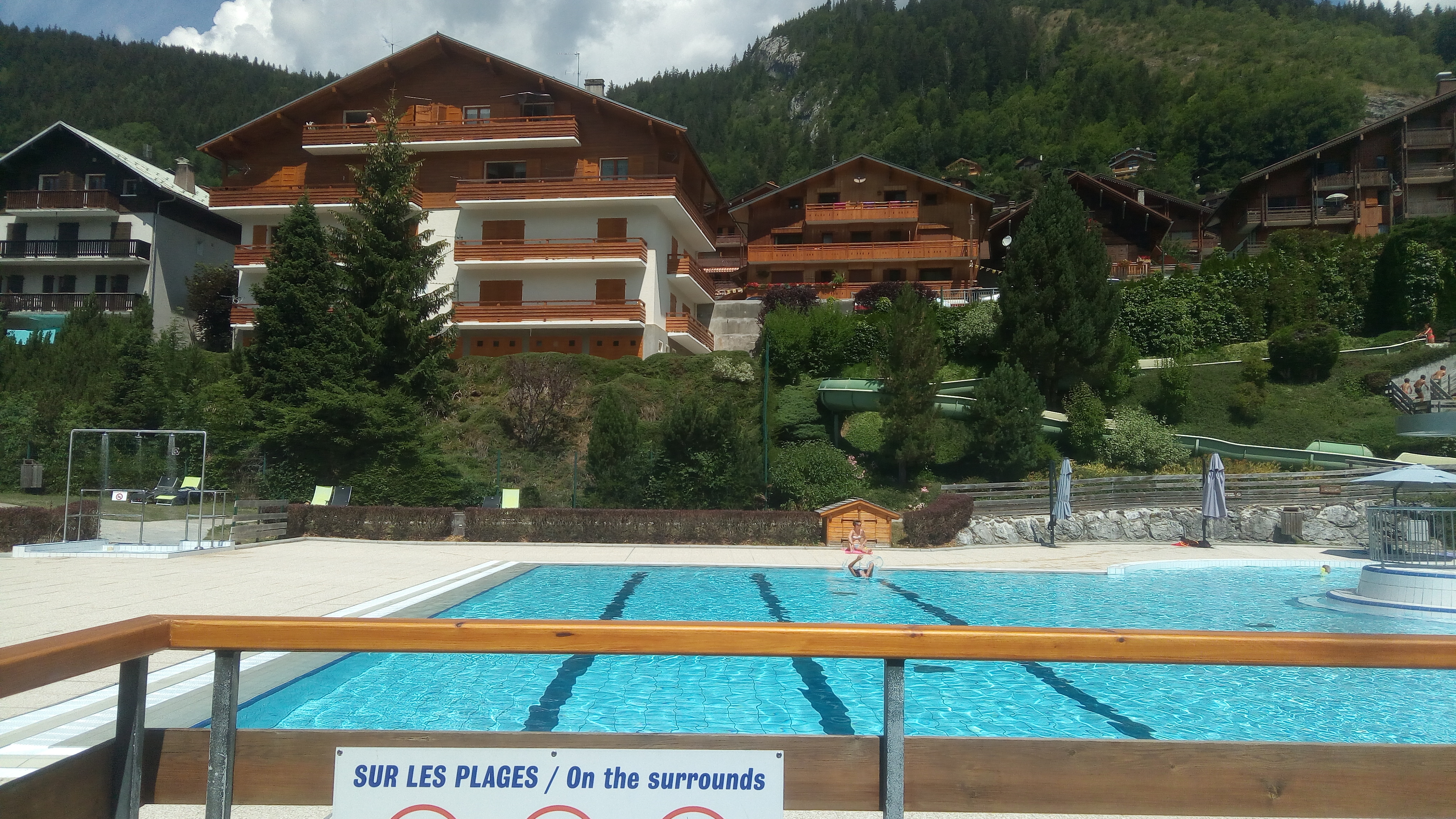 Des bassins pour tous les goûts et de la verdure pour s'installer. Très agréable surtout avec la chaîne des Aravis en visuel.