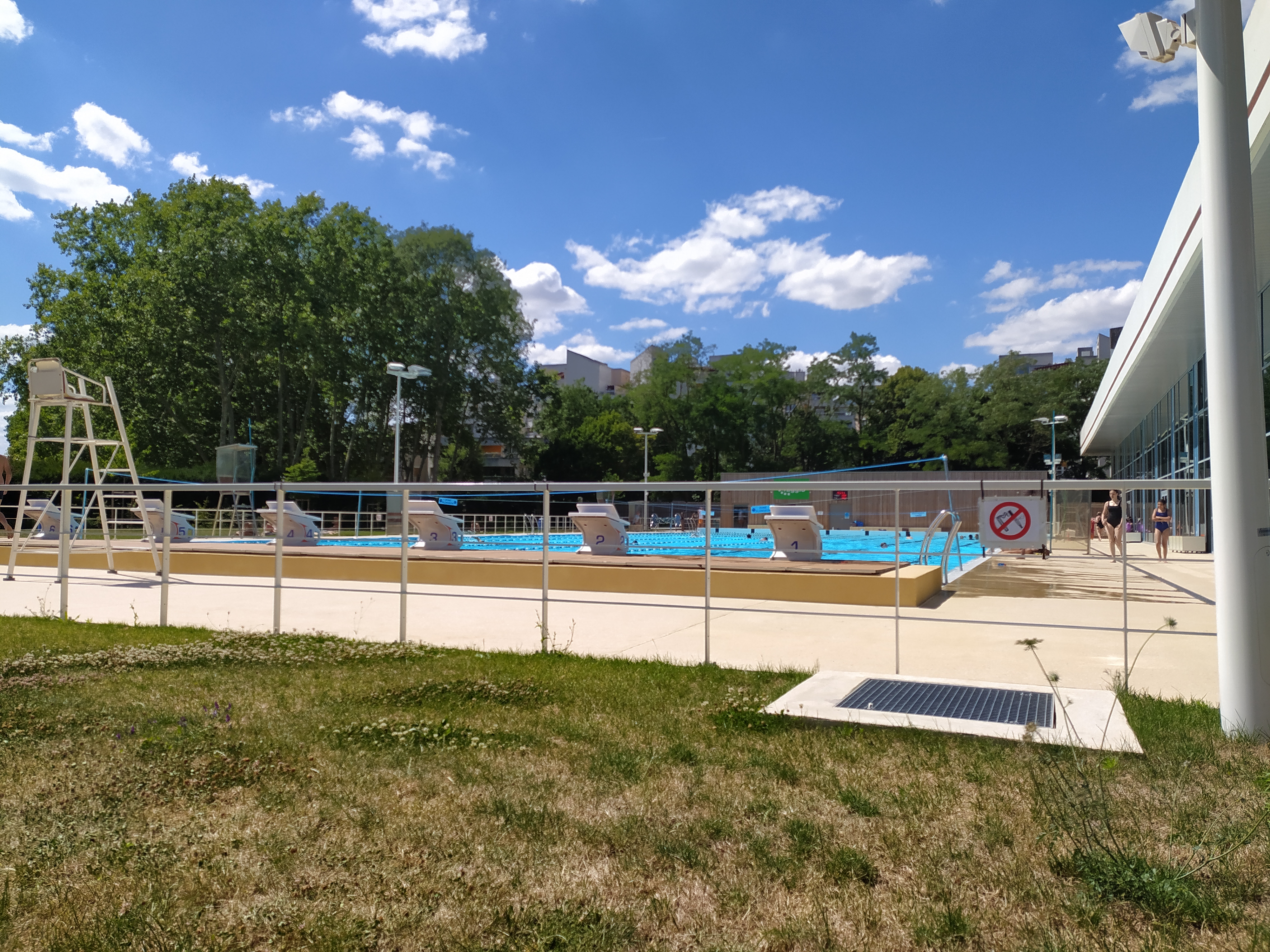 Prestations (bassin olympique de 50m à l'extérieur, bassin de 25m à l'intérieur, toboggan, petit bassin peu profond et pataugeoire à l'intérieur) intéressantes par rapport au prix payé. Il y a un prix résident pour ceux qui travaillent ou habitent dans l'agglomération et un prix standard pour les autres. Les maitres nageurs sauveteurs sont toujours présents. Il est vrai que les vestiaires sont un peu anciens mais rien de dramatique (voir photos). Les cabines de changement sont individuelles, elles séparent et donnent un accès direct aux deux zones (zone pieds nus et zone pieds chaussés). Il faut penser à ramener des pièces (1€ et 0,50€ en fonction du casier sélectionné) pour les casiers qui sont encore à l'ancienne (ce ne sont pas des casier à digicode mais des casiers avec une clé rattachée à un bracelet à porter au poignet lorsque vous nagez). Les douches hommes et femmes sont séparées et il y a des douches ouvertes ou fermées (au choix) avec des portes serviettes pour les douches ouvertes. Le passage par une douche avec savon est obligatoire avant l'accès aux bassins. Il y a également un distributeur de matériel (maillot de bain, short de bain, lunette, bonnet....) En cas d'oubli de son matériel personnel. Une fois dans la piscine (extérieure ou intérieure) on peut contrôler l'heure sur les grandes horloges présentes sur les murs (très utile lorsque l'on va nager sur son temps de pause !). Le matériel de natation (planche, pull buoy...) est mis à disposition de chacun. Il y a un espace bronzage sur la pelouse ou sur le bord de la piscine extérieure, pour ceux qui ne souhaitent que bronzer. Globalement je trouve cet espace piscine très correct.