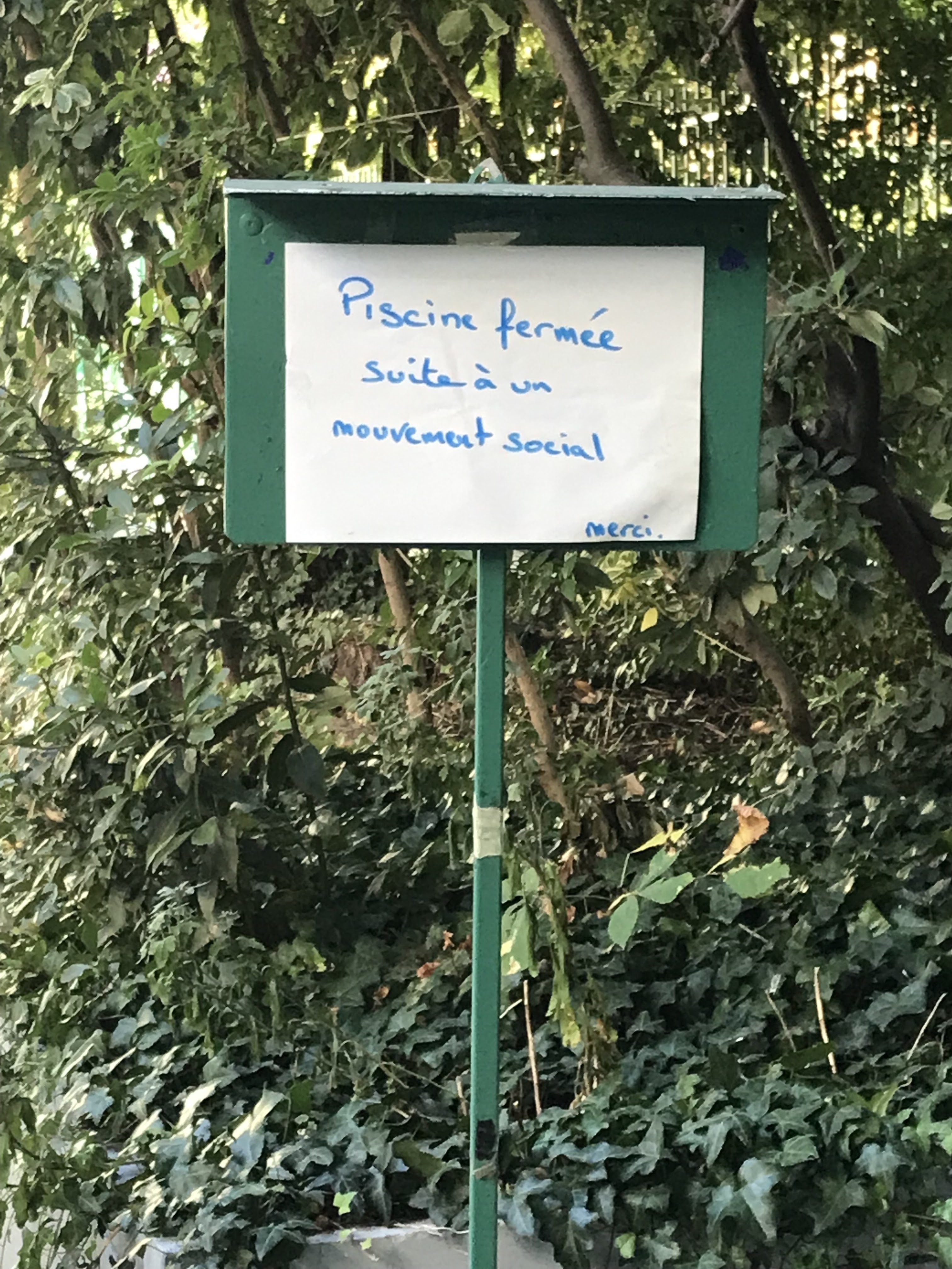 Foutage de gueule ; la piscine est une nouvelle fois fermée pour cause de mouvement social. Bonjour la réputation….
