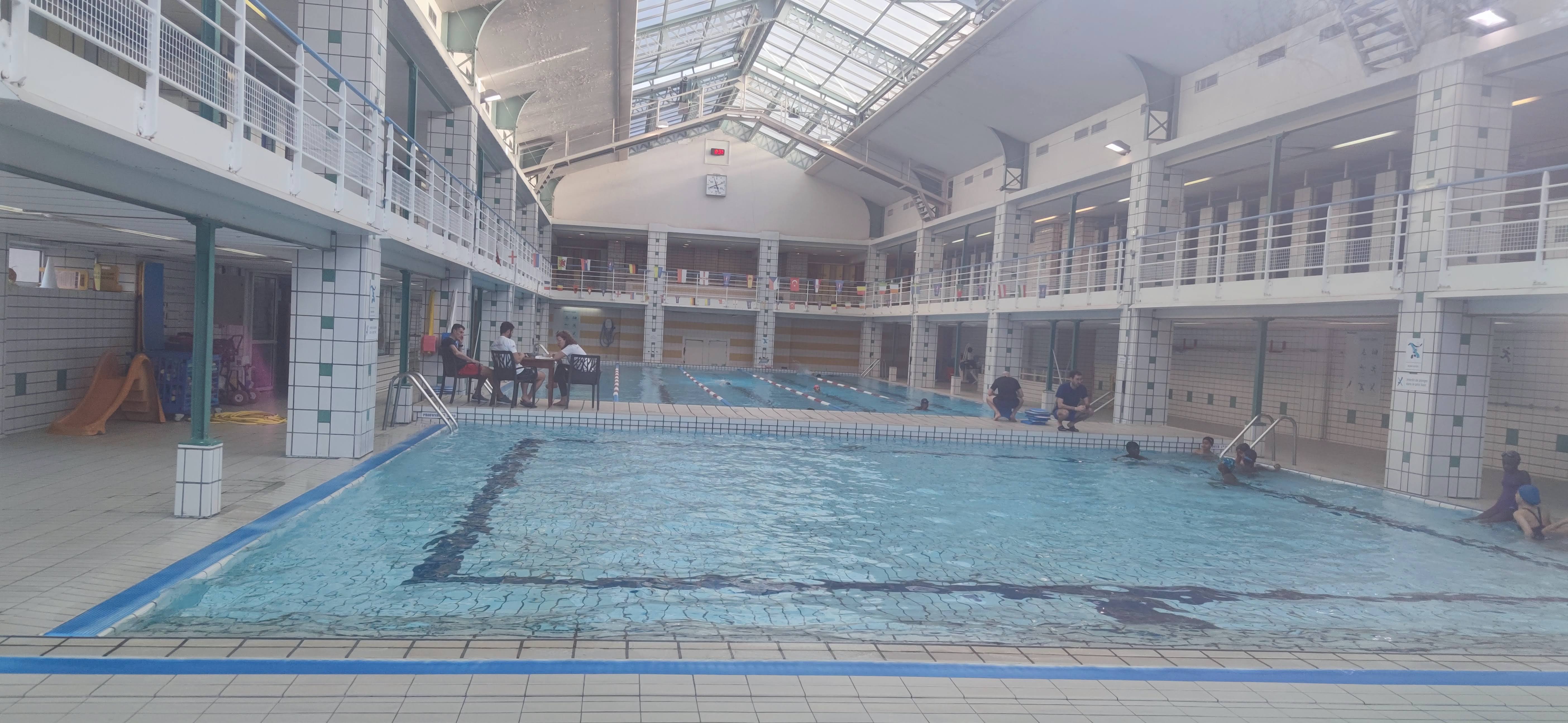 Située près d'un square, piscine propre, avec des cabines au premier étage tout autour des bassins. Petit bain pour les enfants, bassin de 25m pour les nageurs. Affluence en générale correcte . En cas de beau temps, le toit s'ouvre en partie, ce qui est agréable !