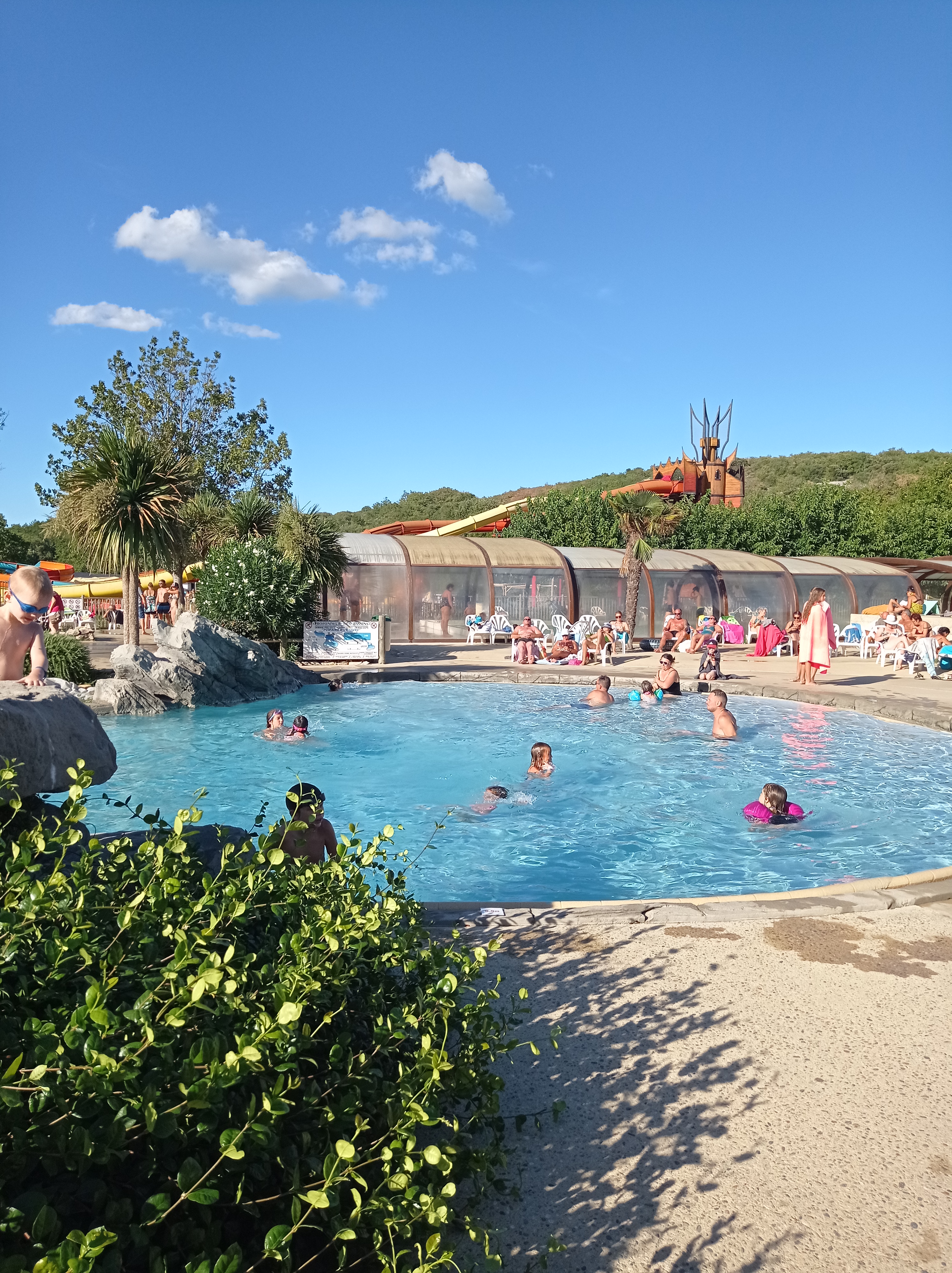 Les piscines et toboggan sont extras , bémol, l'animatrice aux toboggan avec bouées squatte sont 📱, ne surveille pas que les personnes soient bien installés, deux gamines seraient tombés avant la descente sans mon intervention, elle lance la bouée avant 🙄 Les shorts de bain sont interdit mais les strings autorisés et les tenues intégrales aussi, a ne rien comprendre. Manque des places a l'ombre et les accès poussette et fauteuil roulant sont encombrés par des bronzeurs.