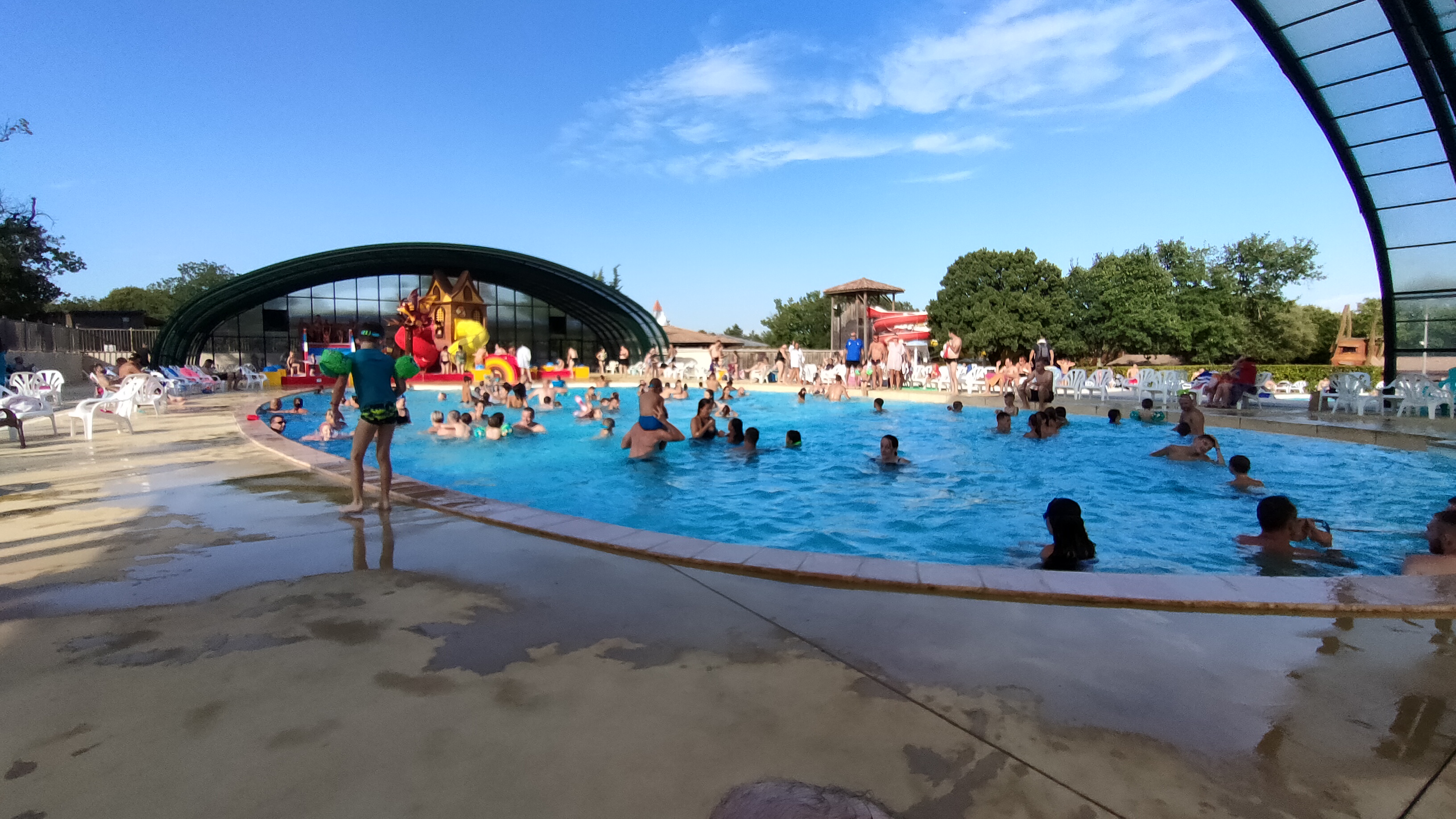 Top ! 1 espace aquatique + 1 Piscine couverte avec des jeux et toboggan pour les enfants. La température sous le dôme est agréable, seul bémol, quelques degrés de plus pour l'eau et ce serait parfait. (Frileuse du Sud ^^) Les enfants se régalent (Il y a aussi un 2e espace aquatique à l'autre extrémité du camping. Chauffé mais non couvert, et avec pleins de toboggans aussi)