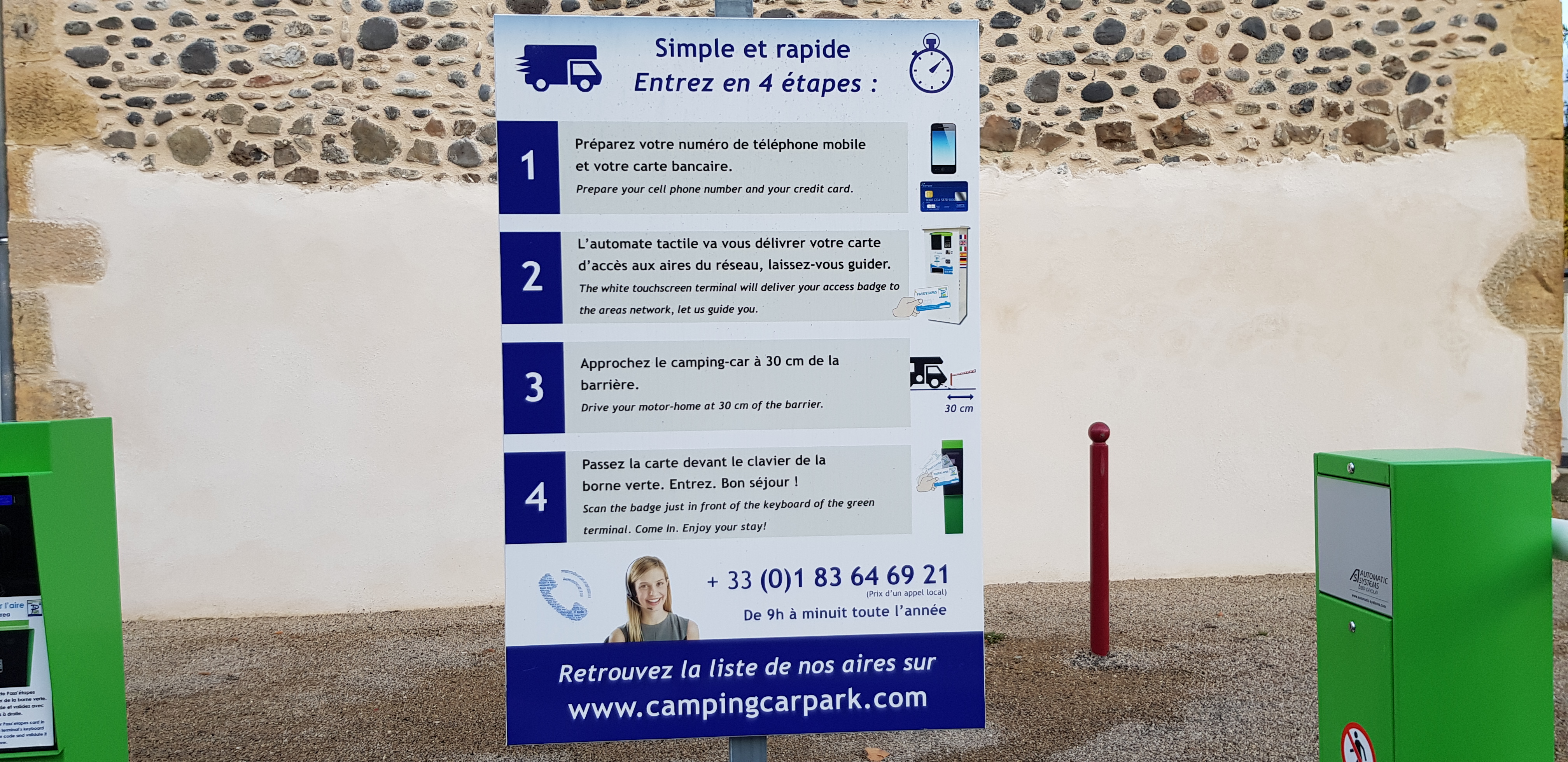 Bon endroit pour une bonne nuit de sommeil. Tout ce dont vous avez besoin est là. Une fois arrivé au portail, procurez-vous un pass à l'automate, vous pourrez utiliser ce pass sur plusieurs emplacements camping-car. Cela semble compliqué mais ce n'est pas le cas. Tout est indiqué en néerlandais sur la machine. Le prix comprend un excellent WIFI et une bonne réception satellite partout.