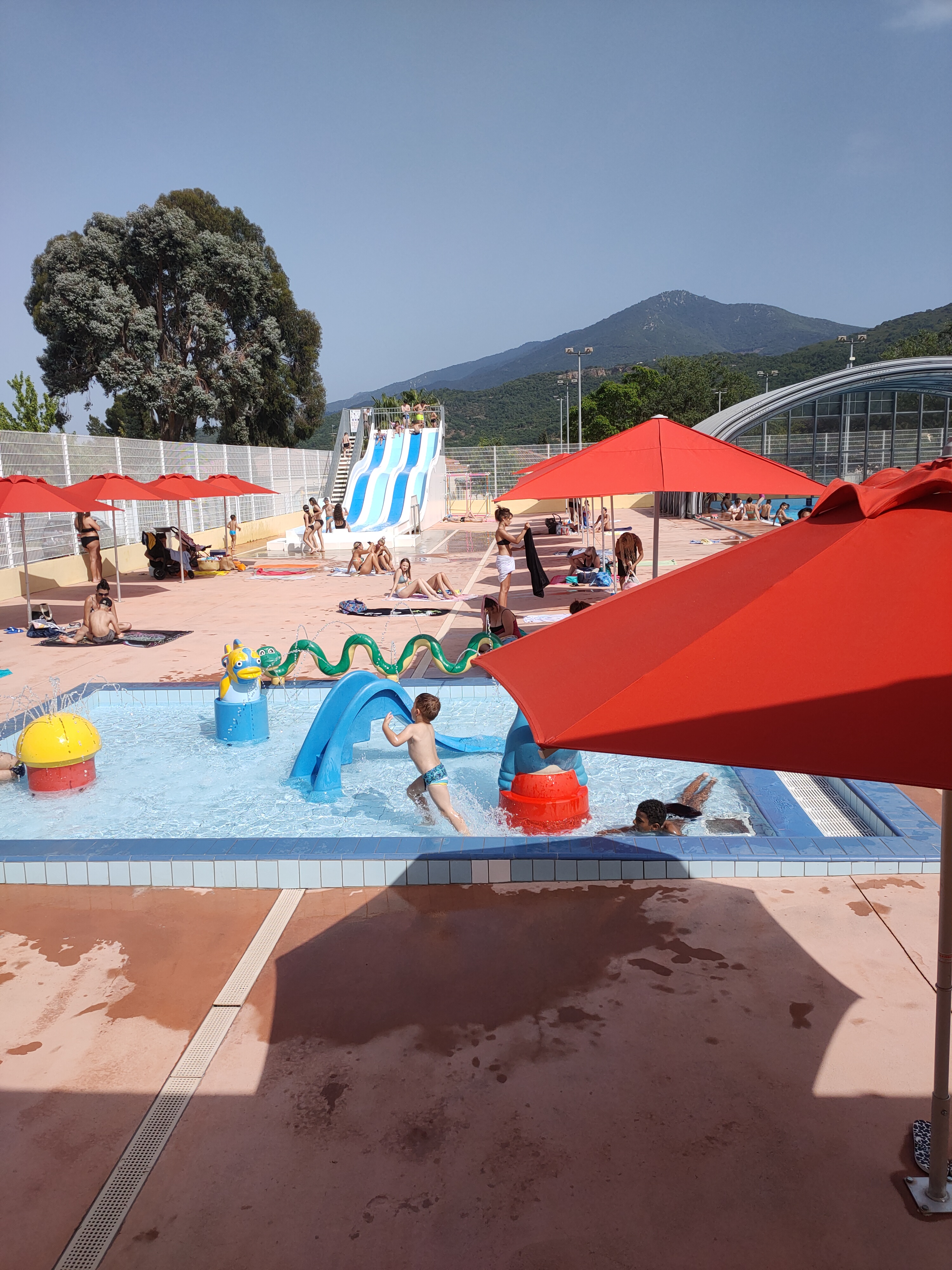 En comparaison a l'an passé rien à voir piscine bondé de monde. Surveillance : 2 maitre nageur assis sagement sur le siège. Beaucoup d enfants laisser livrer à eux même pendant que les parents font bronzette ils grimper sur les jets d'eau pour sauter dans l'eau ce qui est très dangereux vue la quantité d'eau (pataugeoire) un gamin manger des chips dans la pataugeoire et a meme fait tomber le paquet a l'eau ce qui fesait bien rire sa maman du jamais vue sans parler des détritus sur la pelouse synthétique. Enfants brute et impoli qui insulte et hurle a tout va.. la fille de mon amie 5 ans s'est faite agressé pour son petit ballon quand j'ai voulu intervenir un enfant de 11ans ma menacer de mort bref du grand n'importe quoi hygiène des lieux qui laisse à désirer ma fille est recouverte de plaque d allergie sur tout le ventre c'est une honte je ne recommande pas l'endroit et n'y retournerais plus c'est bien dommage et le pompom boucle en or perdu une magnifique journée Merci le Boulou.. bravo