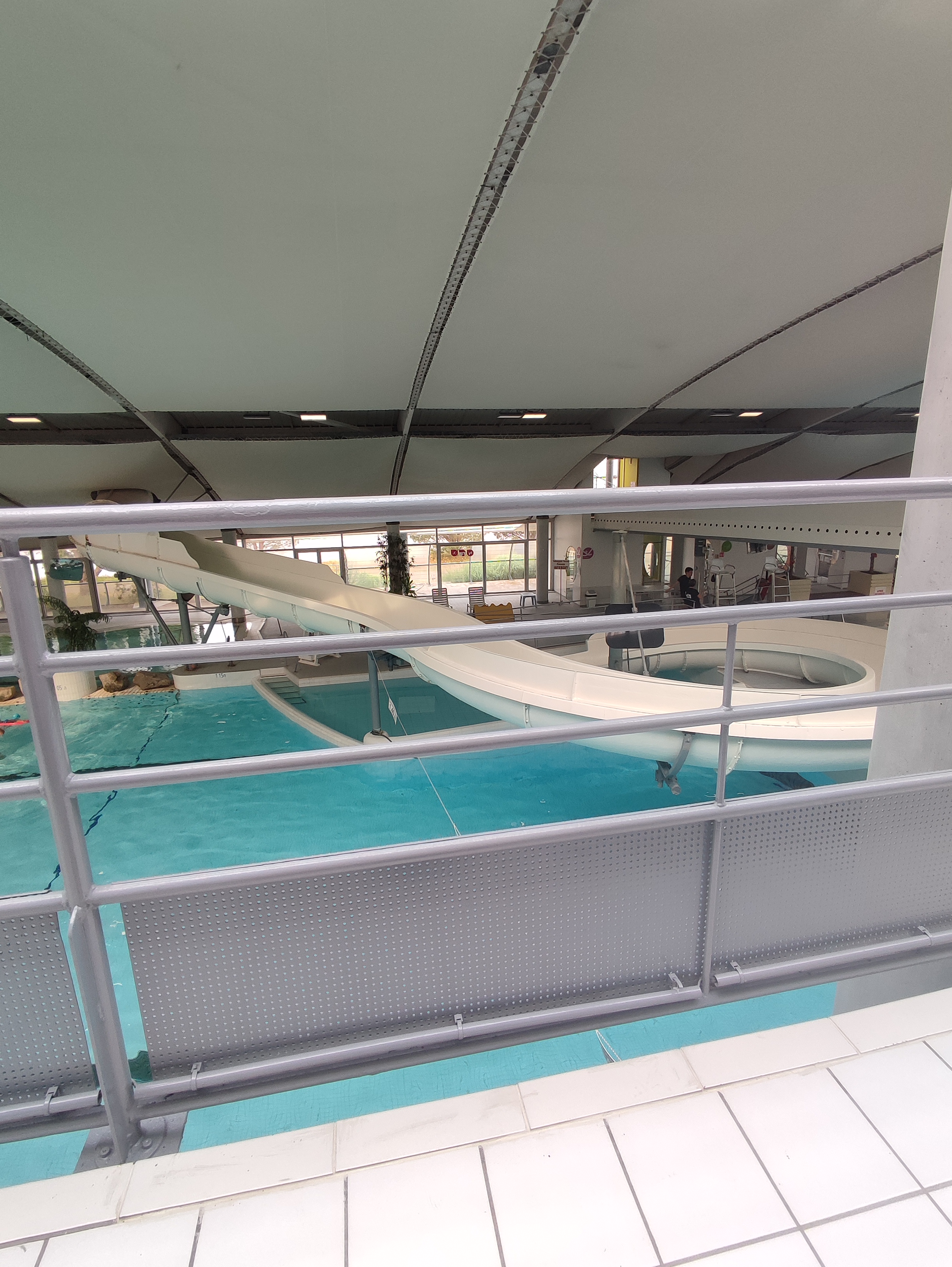 Piscine décevante. Nous n'avons pas été averti qu'il fallait porter un bonnet de bain à l'accueil donc nous nous sommes attirés les foudres des maîtres nageurs pour aller en louer.. Eau trop froide tout comme l'ambiance. Le tobbogan n'est pas très rassurant.