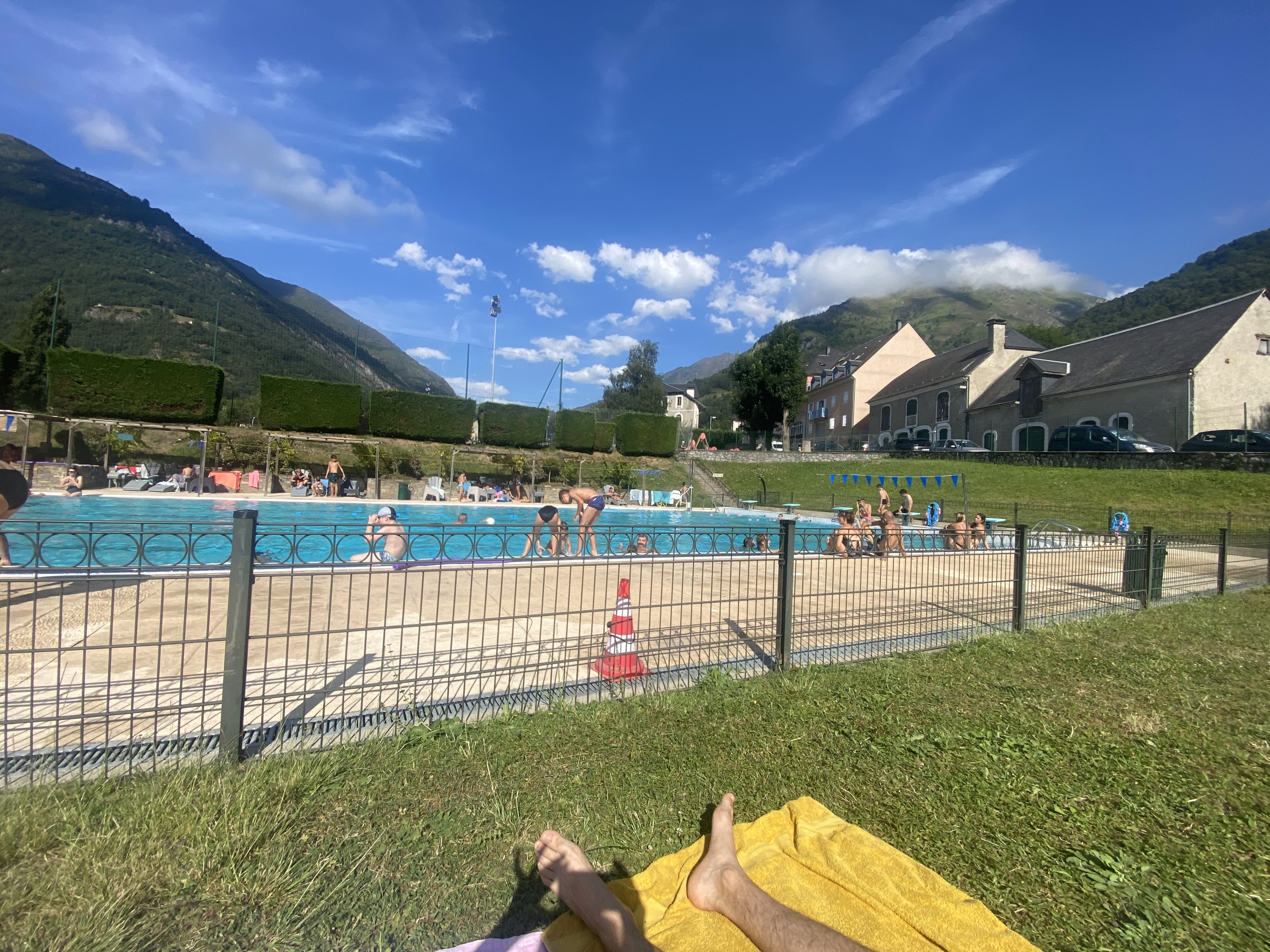 Piscine municipale qui est super, je vois de l'eau chaude pour les Pyrénées, un bon espace pour bronzer et un bar très sympa avec des prix raisonnables. L'après-midi, c'est rempli de monde.