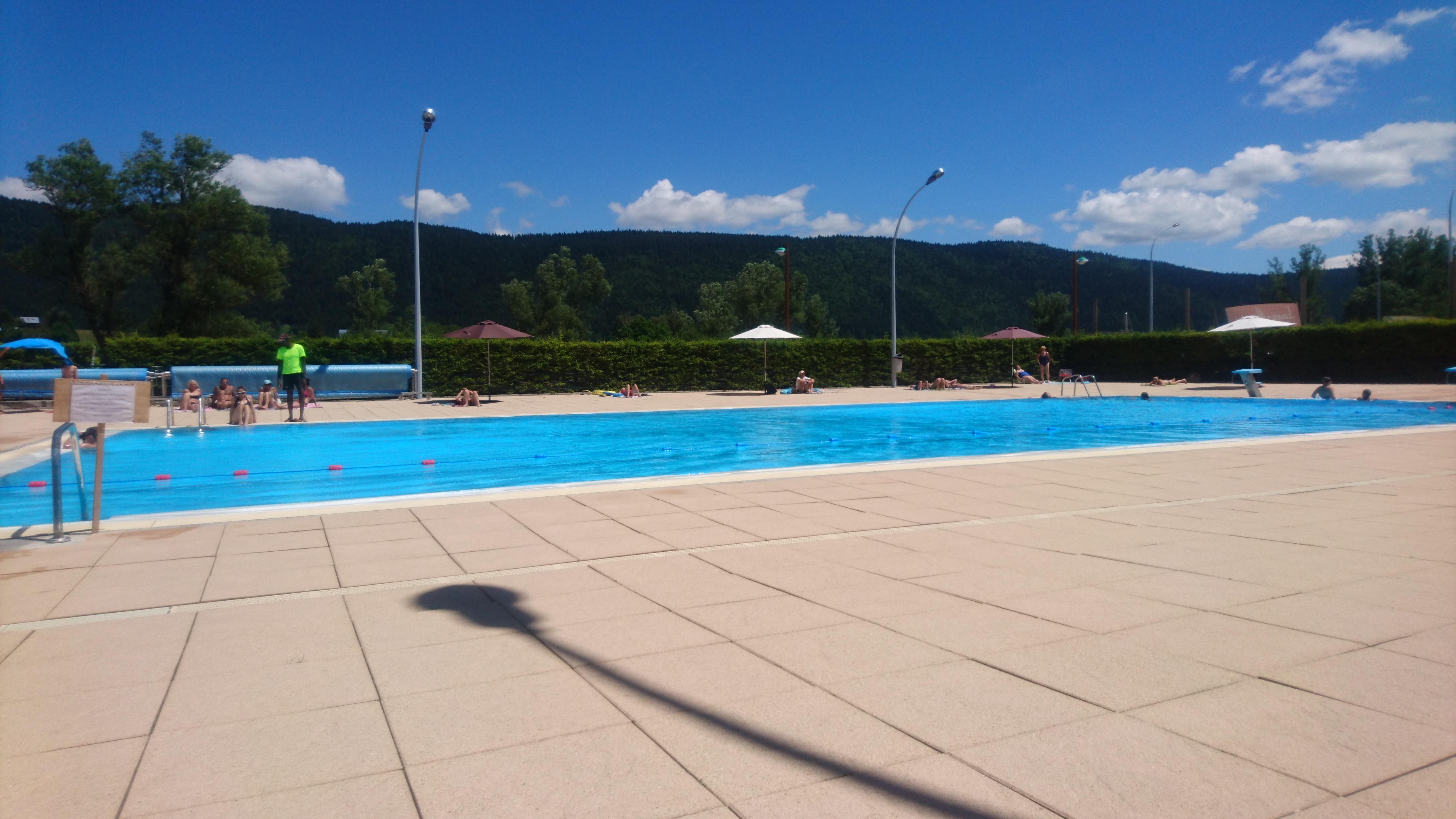 La dame de l'accueil est souriante, agréable et prend le temps, merci :-) Bassins propres, maitre nageur et snack sympa. Il manque juste un peu d'ombre
