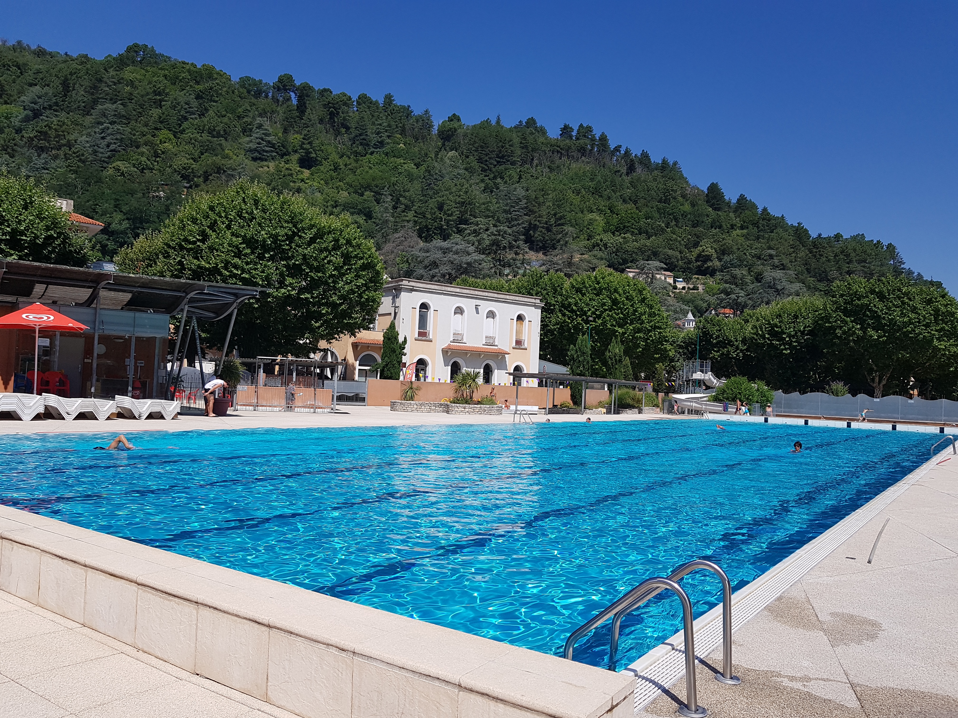 J'ai pas d'avis sur la piscine j'suis allé au parc de jeu pour mon fils, et le seul avis que j'ai c'est ce jour là a part des relents de parfum bon marché appliquée en sur doses ou l'odeur de pétard des Biocoop qui joué du tam-tam a côté qui m'ont donné des remontées acides toute la journée, a part ça le parc de jeu et sympa et ce balader de ce côté de vals et agréable même si tout est fermé car pas la bonne saison.